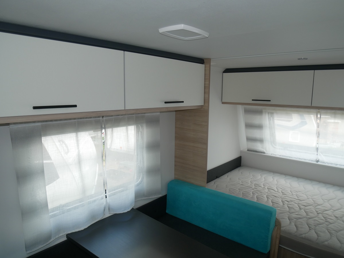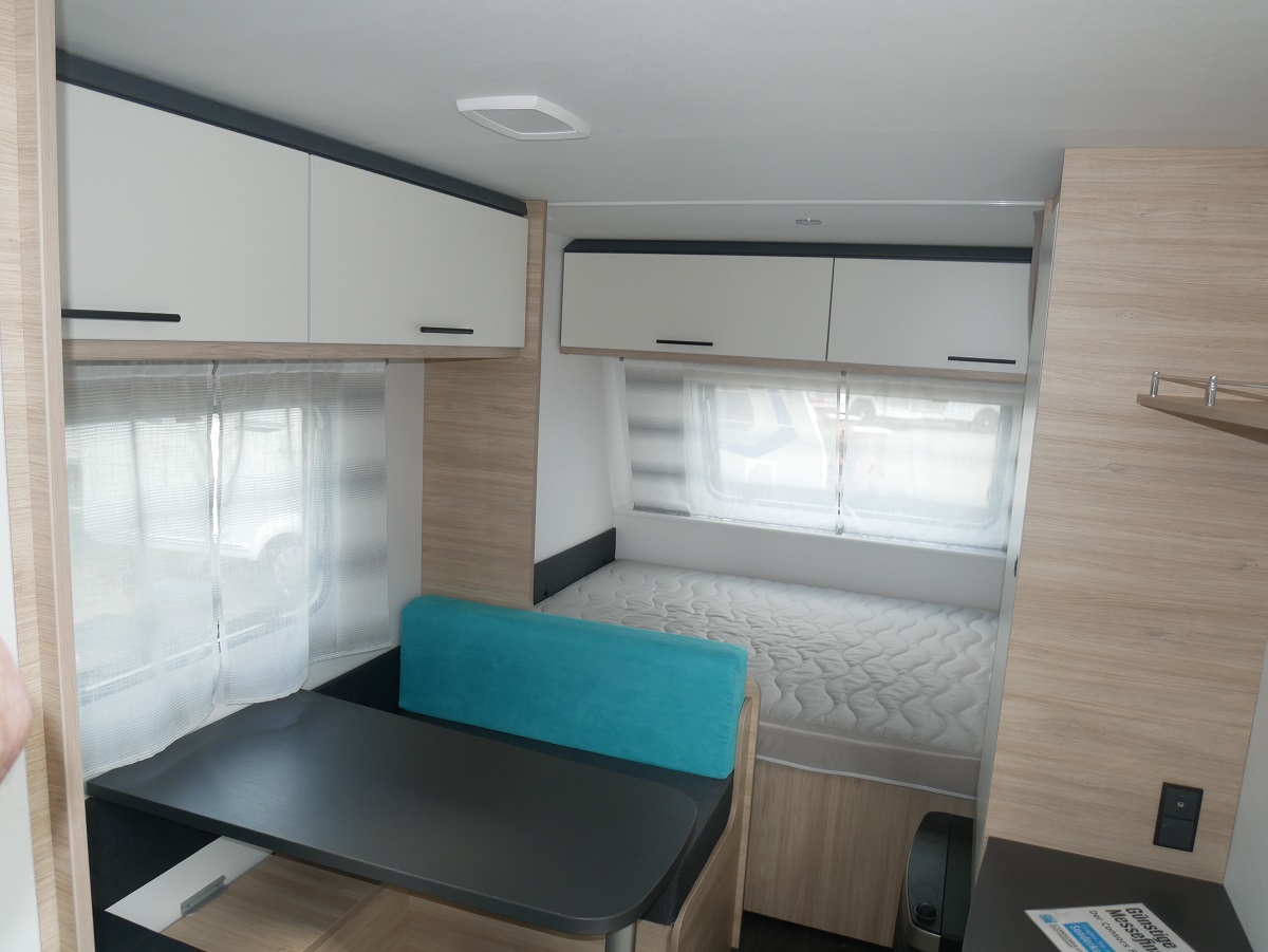Antischlingerkupplung 3004, Stoßdämpfer, Serviceklappe, LED Außenleuchte, GfK Polyester Dach, Bugfenster , Ausstellfenster mit Kombirollos , Kühlschrank , 3flammen Gaskochherd, Truma Gasheizung, elektr. Thetford Toilette, LED Innenbeleuchtung, Umformer 230 V/12 V mit Abschalter und Ladegerät