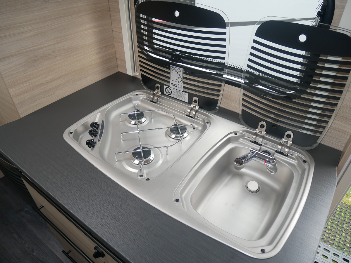 Antischlingerkupplung 3004, Stoßdämpfer, Serviceklappe, LED Außenleuchte, GfK Polyester Dach, GfK Seitenwände, Truma WW Therme 5 l, Duschpaket, Frischwassertank 50 Liter, Abwassertank rollbar 30 Liter, Panorama Dachhaube 700x500, 15cm Kaltschaummatratze, zusätzliche Lesespots,