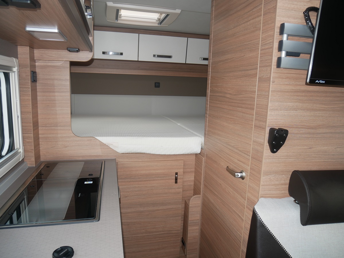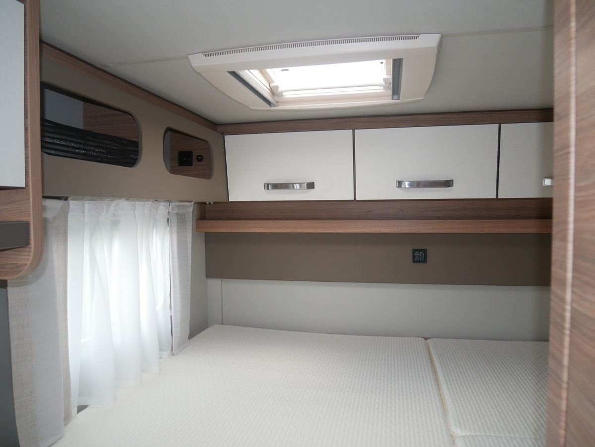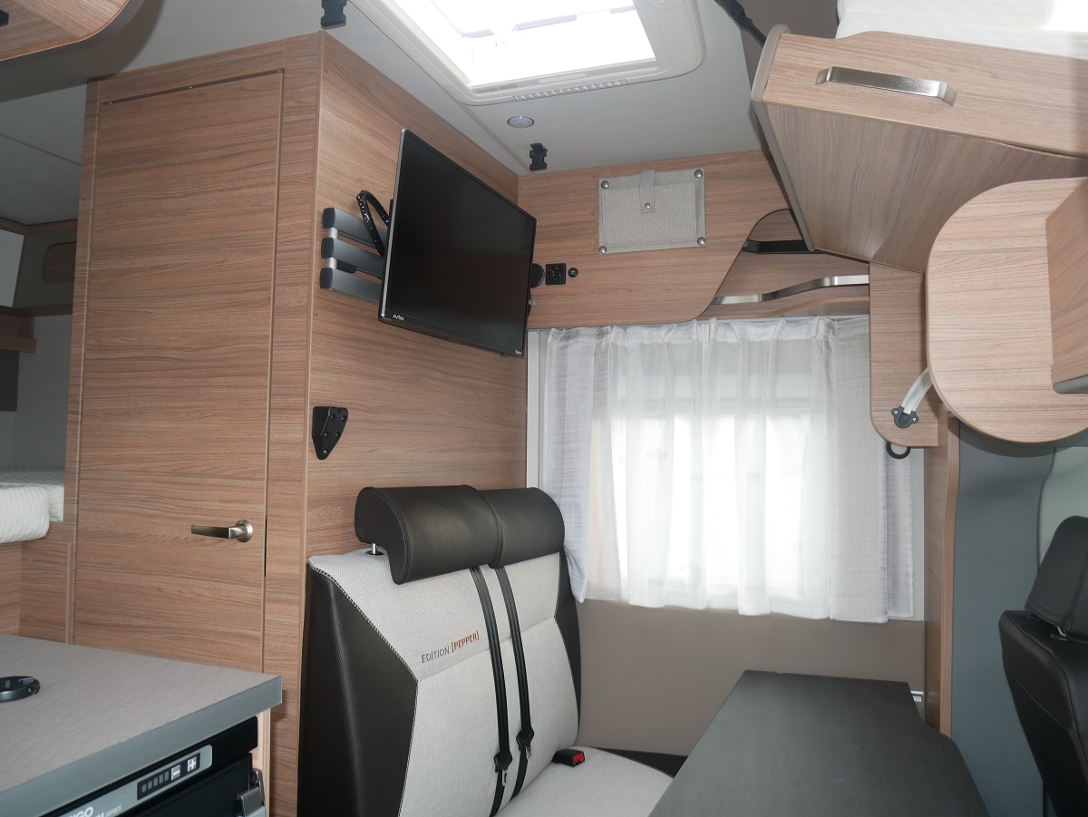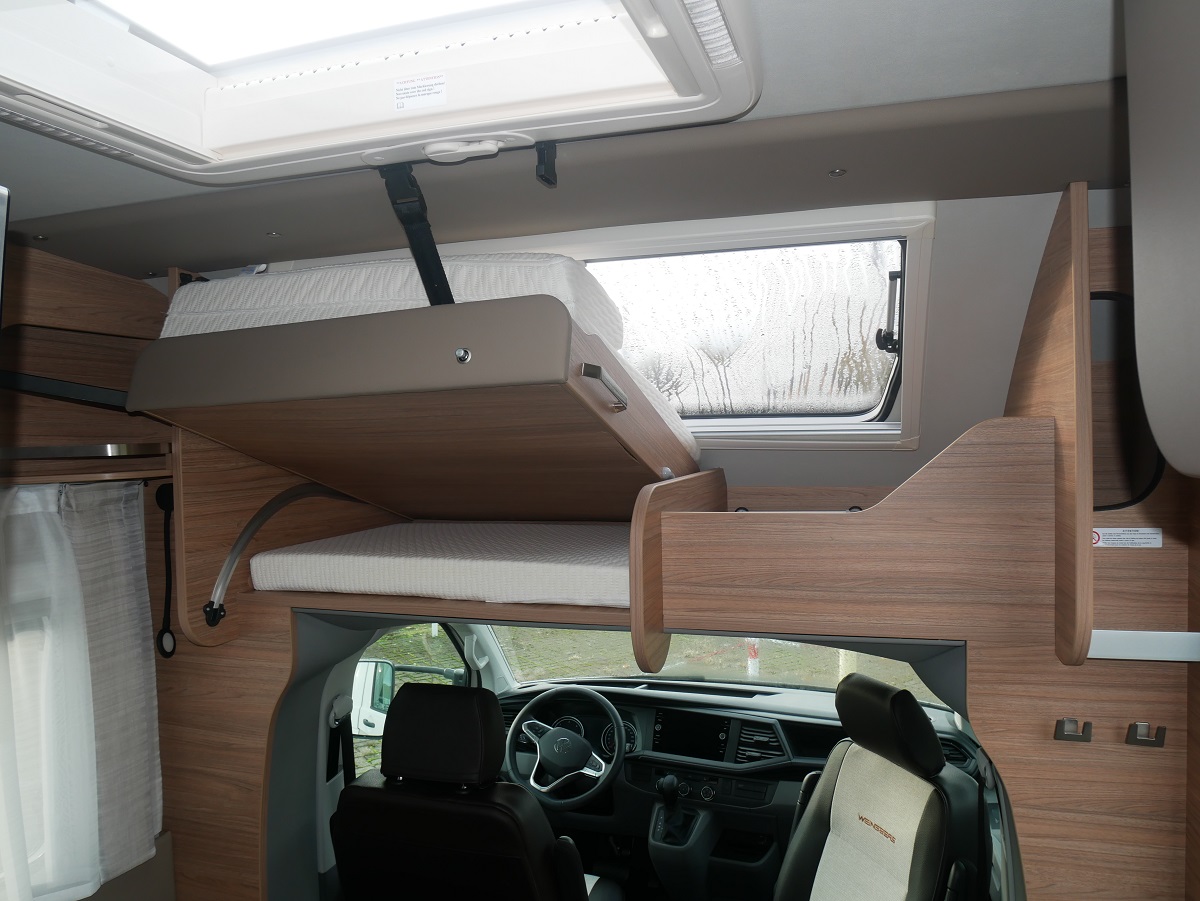 Ausstellfenster Hutze mit Insektenschutz und Verdunkelung, Dachaube 700x500 mit Kombirollos, Schonbezüge Fahrerhaussitze in Polsterfarbe, Fronstoßfänger in Wagenfarbe, Stauraumklappen beidseitig, Fliegenschutztür, Ausstellfenster mit Kombirollos, Ambientebeleuchtung, Multifunktionslenkrad, Wasserfiltersystem