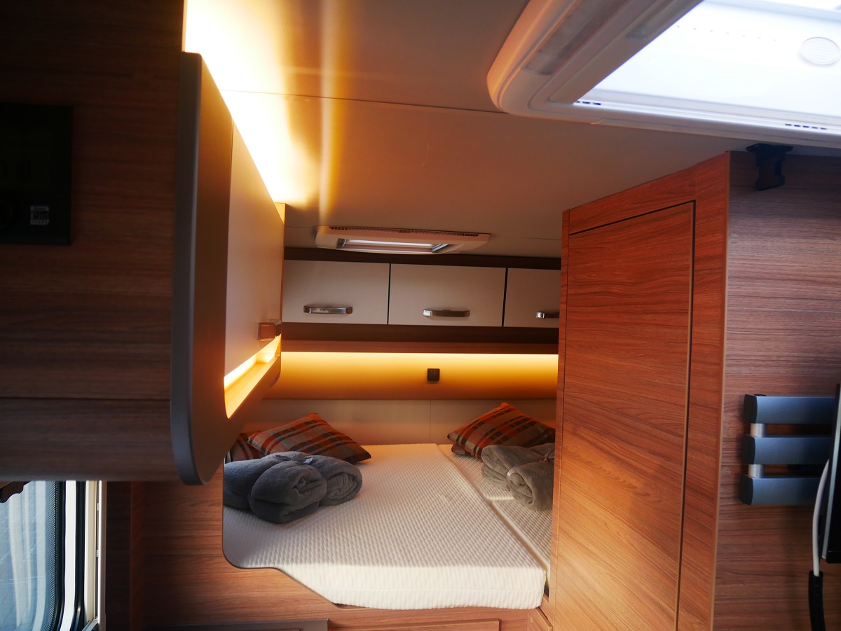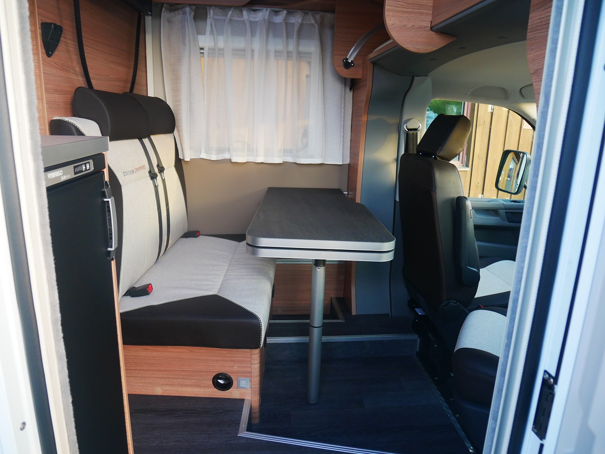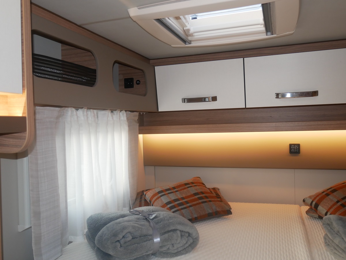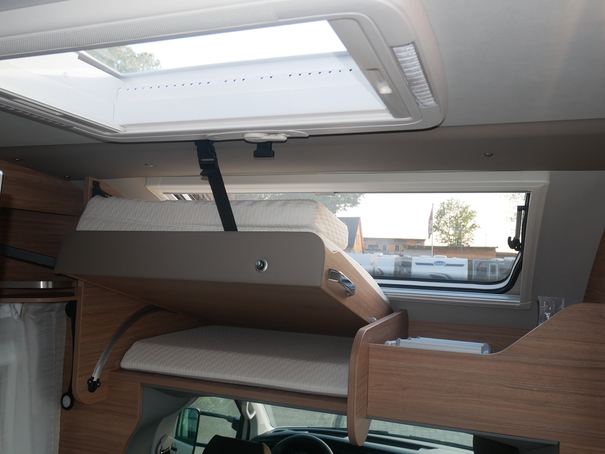 Ausstellfenster Hutze mit Insektenschutz und Verdunkelung, Dachhaube 700x500 mit Kombirollos, Schonbezüge Fahrerhaussitze in Polsterfarbe, Fronstoßfänger in Wagenfarbe, Stauraumklappen beidseitig, Fliegenschutztür, Ausstellfenster mit Kombirollos, Ambientebeleuchtung, Multifunktionslenkrad, Wasserfiltersystem