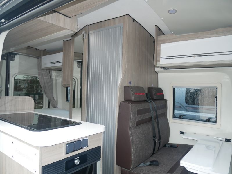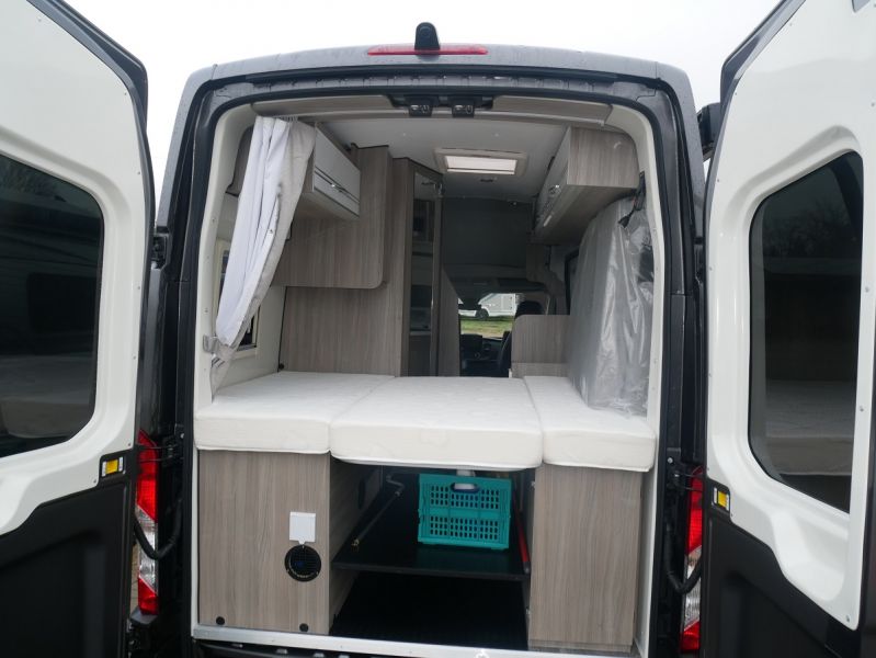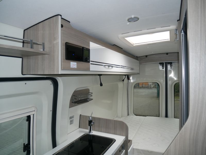 Truma D 4 Kombi- Kraftstoffheizung, 2 flammen Gaskochherd, Edelstahl- Spülbecken, 70 Liter Kompressor- Kühlschrank, 100 Liter Frischwassertank + Druckwasserpumpe, schwenkbare Kassetten Toilette, elektr. Einstiegsstufe, Außen- LED Leuchte, Heckbett mit Lattenrost hochklappbar, Reserverad, Außendusche an der Seitentür, Frontschutzbügel
