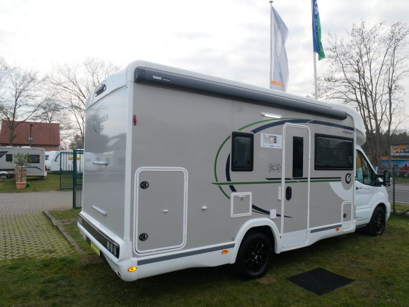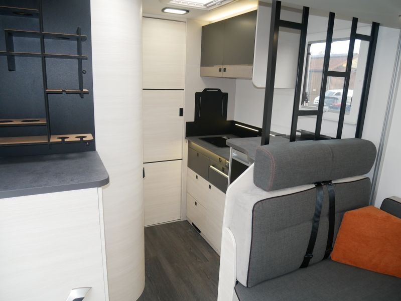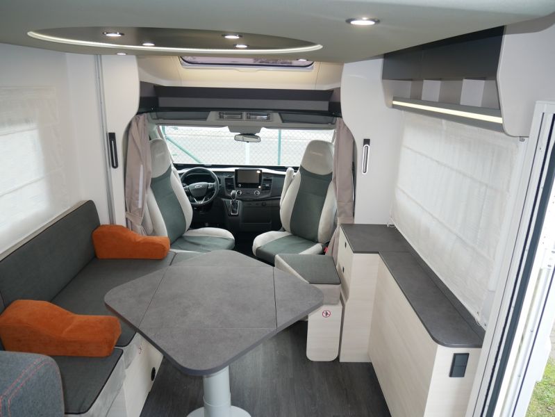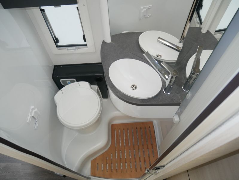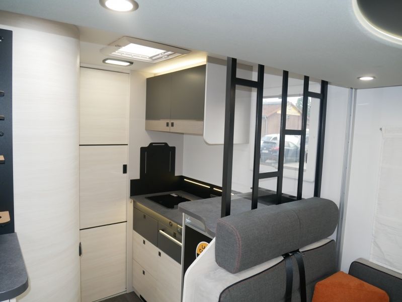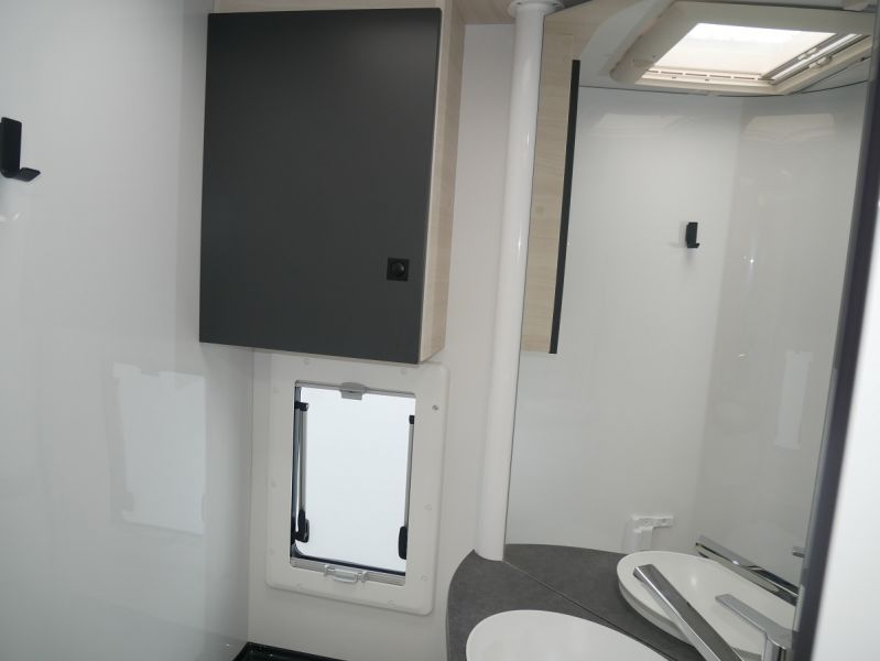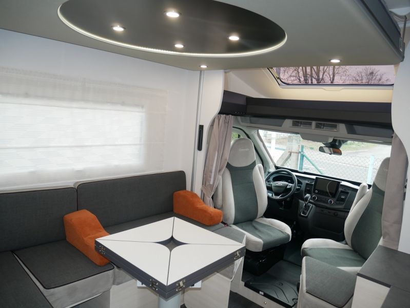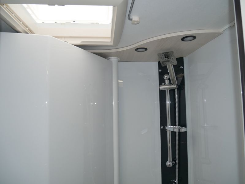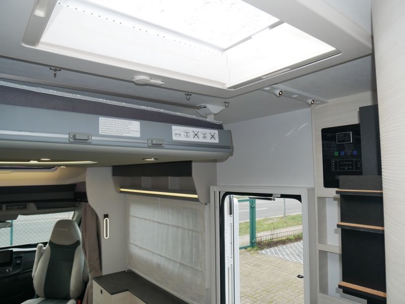 GfK Polyester Dach + Wände, Luxus- Aufbautür mit Fenster und Fliegenschutztür, Gas- Außensteckdose, Anschluss Außendusche, Panorama Dachfenster Fahrerhaus, Ausstellfenster mit Kombirollos, Innenbeleuchtung LED, Holzlattenrost Dusche, Kraftstoffheizung auch während der Fahrt nutzbar, Technikbox, Warmwasserboiler, elektr. Thetford-Toilette, Gaskochherd, Kompressor- Kühlschrank 135 Liter, USB Anschluss