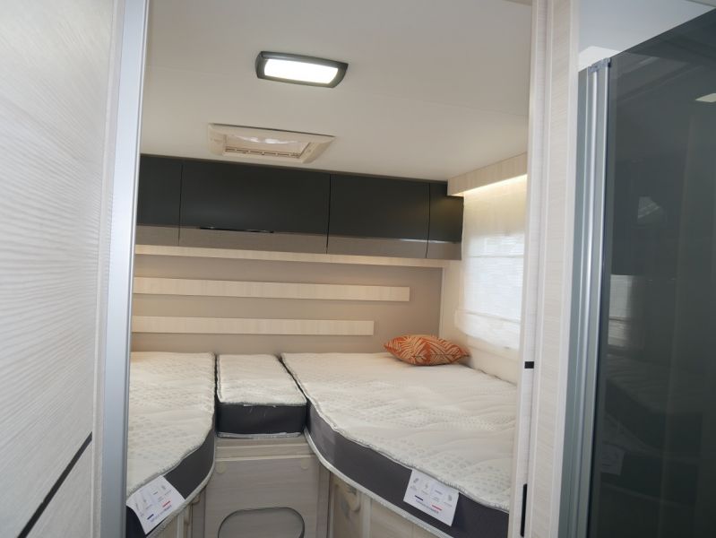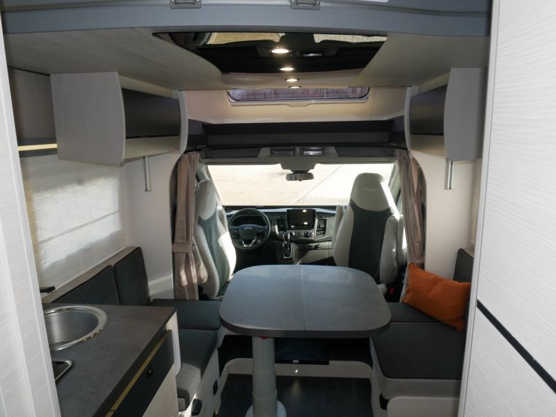 Fahrerhausklima, Fahrer und Beifahrerairbag, Tempomat+Geschwindigkeitsbegrenzer, Stop-Start, Spurhalteassistent + Kollisionswarner + Notbremsunterstützung, Nebelscheinwerfer, Lichtautomatik und Automatischer Scheibenwischer mit Regensensor, 16" Alu Felgen Black, höhenverstellbare Drehsitze mit Doppelarmlehnen, Schonbezüge für Fahrerhaussitze in Polsterfarbe, elektr. Aussenspiegel mit Abtauautomatik, GfK Polyester Dach + Seitenwände + Boden, Panorama Dachfenster Fahrerhaus, Aufbautür-Luxus mit Fenster und Verdunkelung, Fliegenschutztür, Ausstellfenster mit Kombirollos, Dachhaube mit Ventilator über dem Heckbett, LED Innenbeleuchtung, Kühlschrank AES 141 l, Kraftstoffheizung mit Umluftanlage, 2 x Isofix