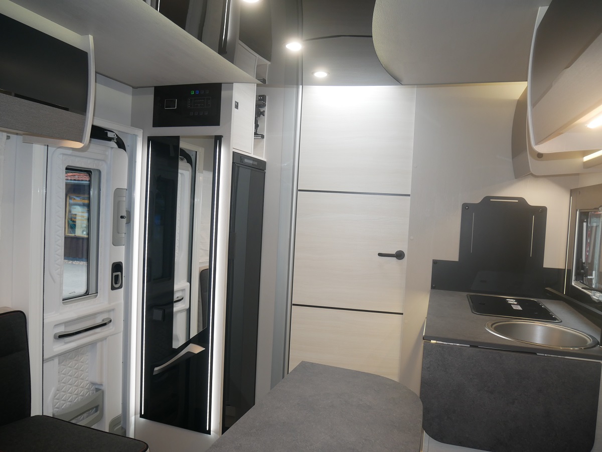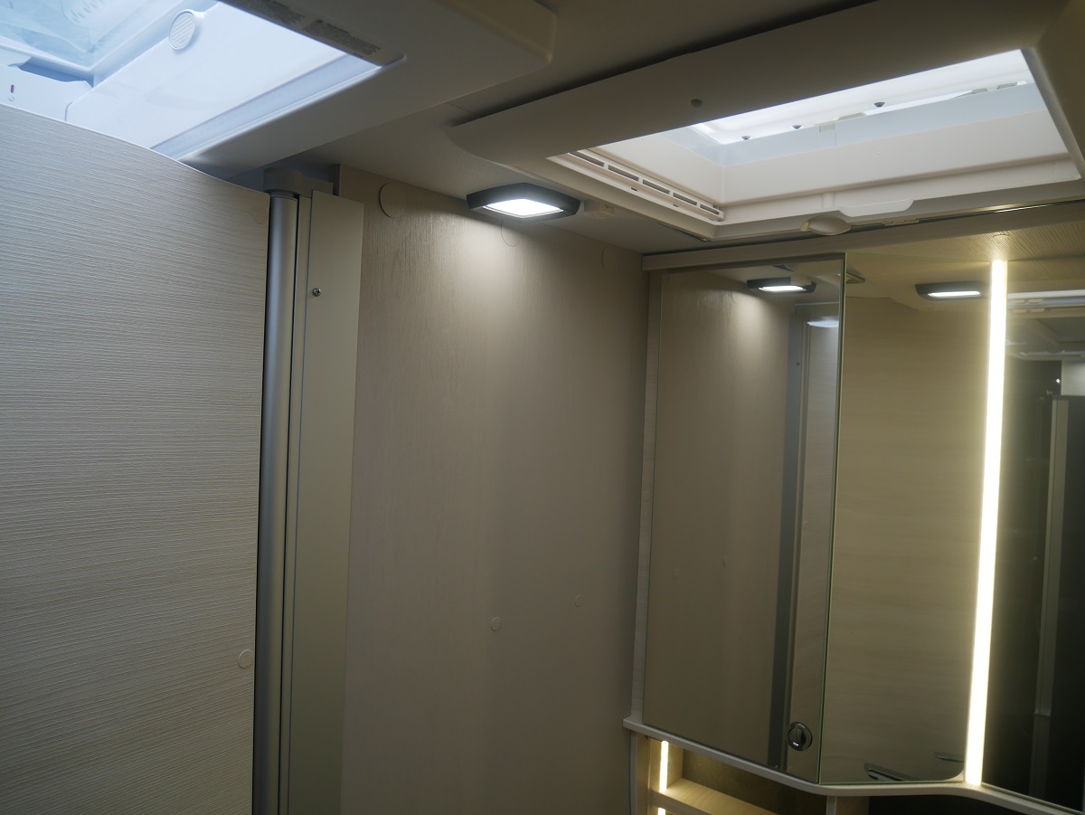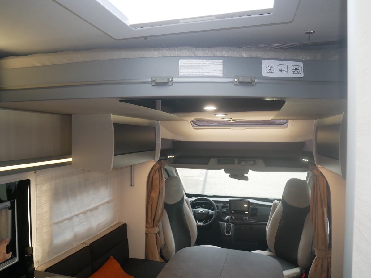 Fahrerhausklima, Fahrer- und Beifahrerairbag, Tempomat + Geschwindigkeitsbegrenzer, Stopp-Start, Spurhalteassistent + Kollisionswarner + Notbremsunterstützung, Nebelscheinwerfer, Lichtautomatik und Automatischer Scheibenwischer mit Regensensor, 16" Alu Felgen Black, höhenverstellbare Drehsitze mit Doppelarmlehnen, Schonbezüge für Fahrerhaussitze in Polsterfarbe, elektr. Außenspiegel mit Abtauautomatik, GfK Polyester Dach + Seitenwände + Boden, Panorama Dachfenster Fahrerhaus, Aufbautür-Luxus mit Fenster und Verdunkelung, Fliegenschutztür, Ausstellfenster mit Kombirollos, Dachhaube mit Ventilator über dem Heckbett, LED Innenbeleuchtung