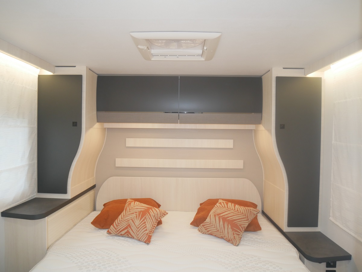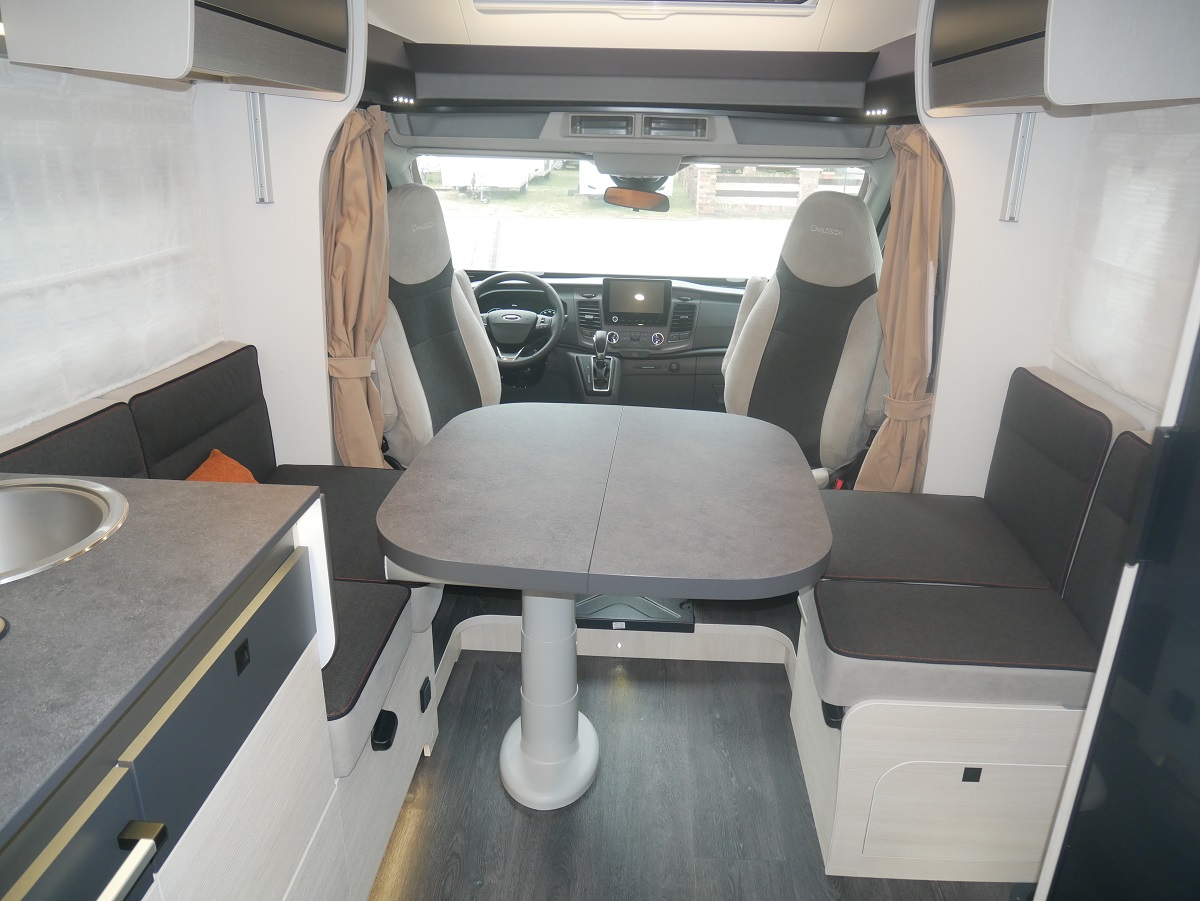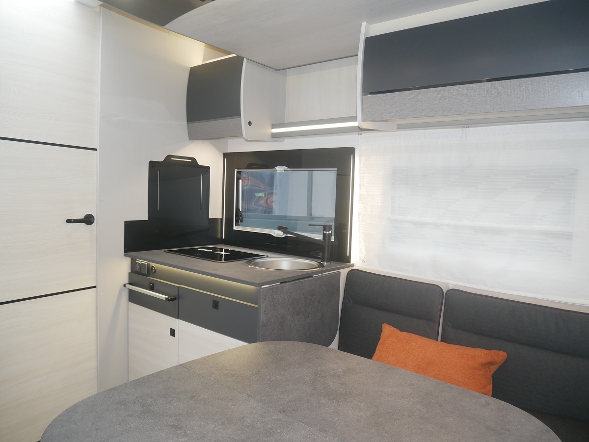 Fahrerhausklima, Fahrer- und Beifahrerairbag, Tempomat + Geschwindigkeitsbegrenzer, Stopp-Start, Spurhalteassistent + Kollisionswarner + Notbremsunterstützung, Nebelscheinwerfer, Lichtautomatik und Automatischer Scheibenwischer mit Regensensor, 16" Alu Felgen Black, höhenverstellbare Drehsitze mit Doppelarmlehnen, Schonbezüge für Fahrerhaussitze in Polsterfarbe, elektr. Außenspiegel mit Abtauautomatik, GfK Polyester Dach + Seitenwände + Boden, Panorama Dachfenster Fahrerhaus, Aufbautür-Luxus mit Fenster und Verdunkelung, Fliegenschutztür, Ausstellfenster mit Kombirollos, Dachhaube mit Ventilator über dem Heckbett, LED Innenbeleuchtung
