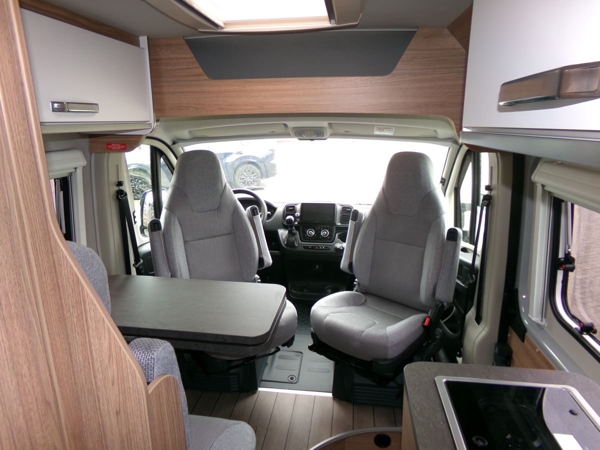 Fahrzeugklima, Fahrer und Beifahrerairbag, Tempomat, höhenverstellbarer Fahrer und Beifahrersitz, elektronische Wegfahrsperre, Ausstellfenster mit Kombirollos, 2- flammen Gaskochherd, Kompressor-Kühlschrank, TrumaCombi-Heizung, Ladebooster für Aufbaubatterie,