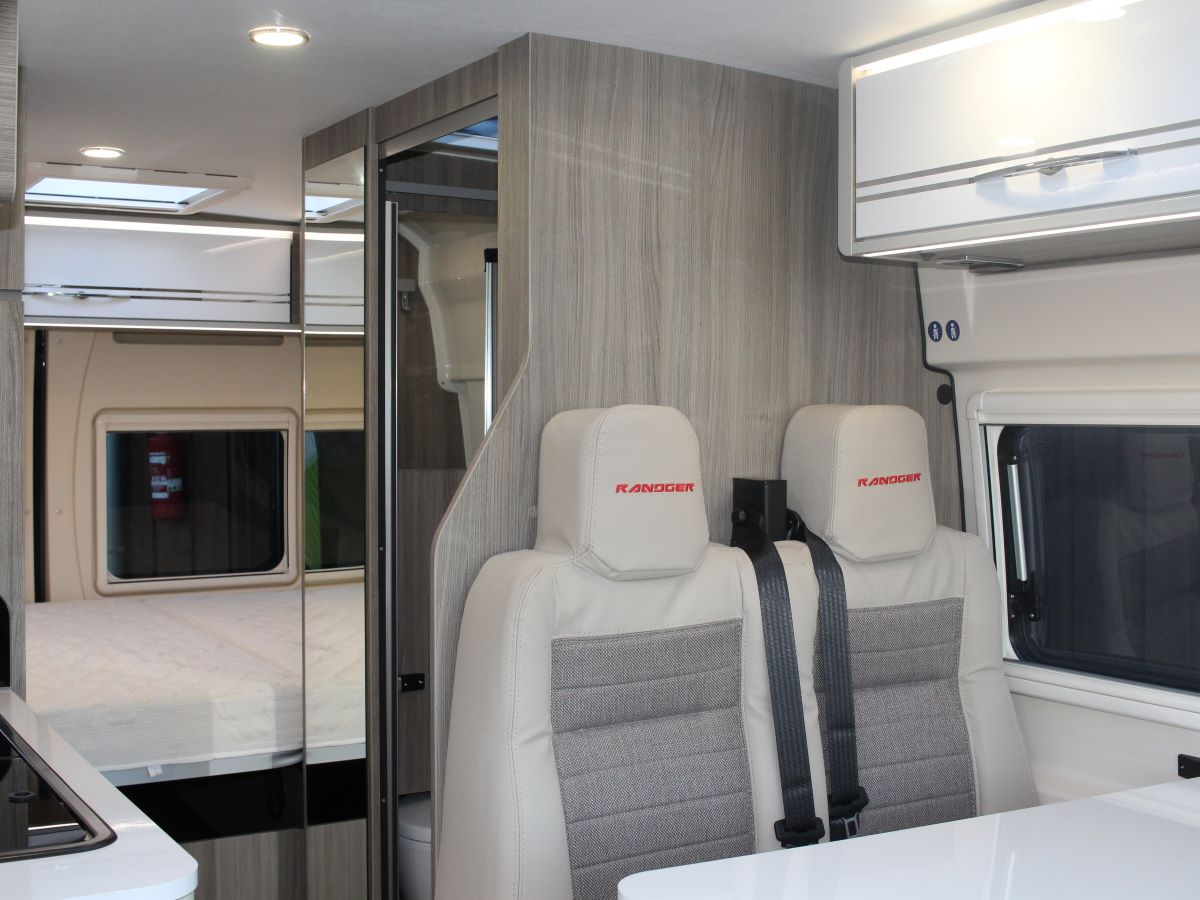 Fahrzeugklima, Tempomat, Rückfahrkamera, Radio, Fahrer und Beifahrerairbag, Bordcomputer, Wegfahrsperre, elektr. einstellbare Außenspiegel, Fahrerhaussitze drehbar und höhenverstellbar, Schonbezüge für Fahrerhaussitze, elektr. Einstiegsstufe, Kraftstoff-Combi-Heizung, großer Kühlschrank 138 Liter, Ausstellfenster mit Kombirollos, Panorama Dachhaube 700x 500
