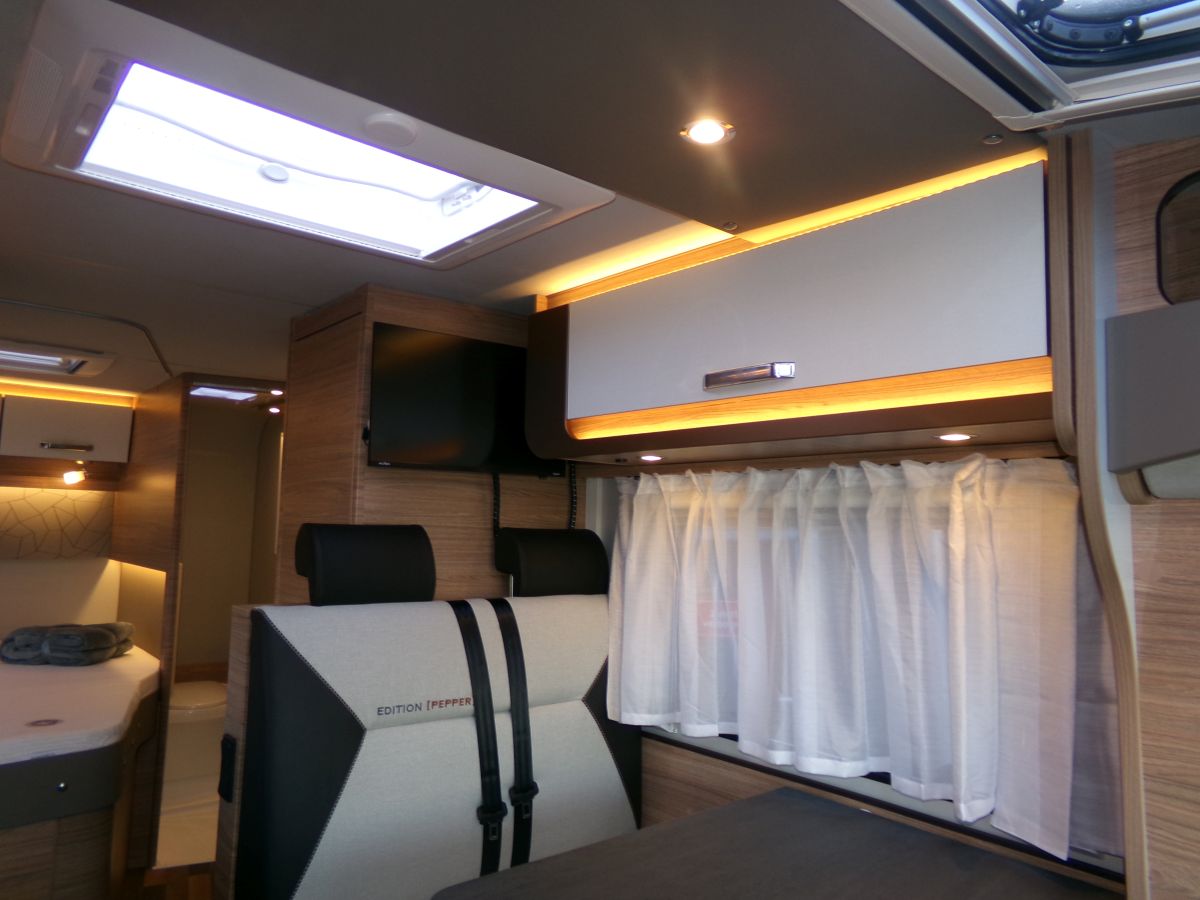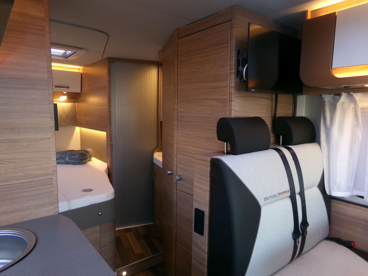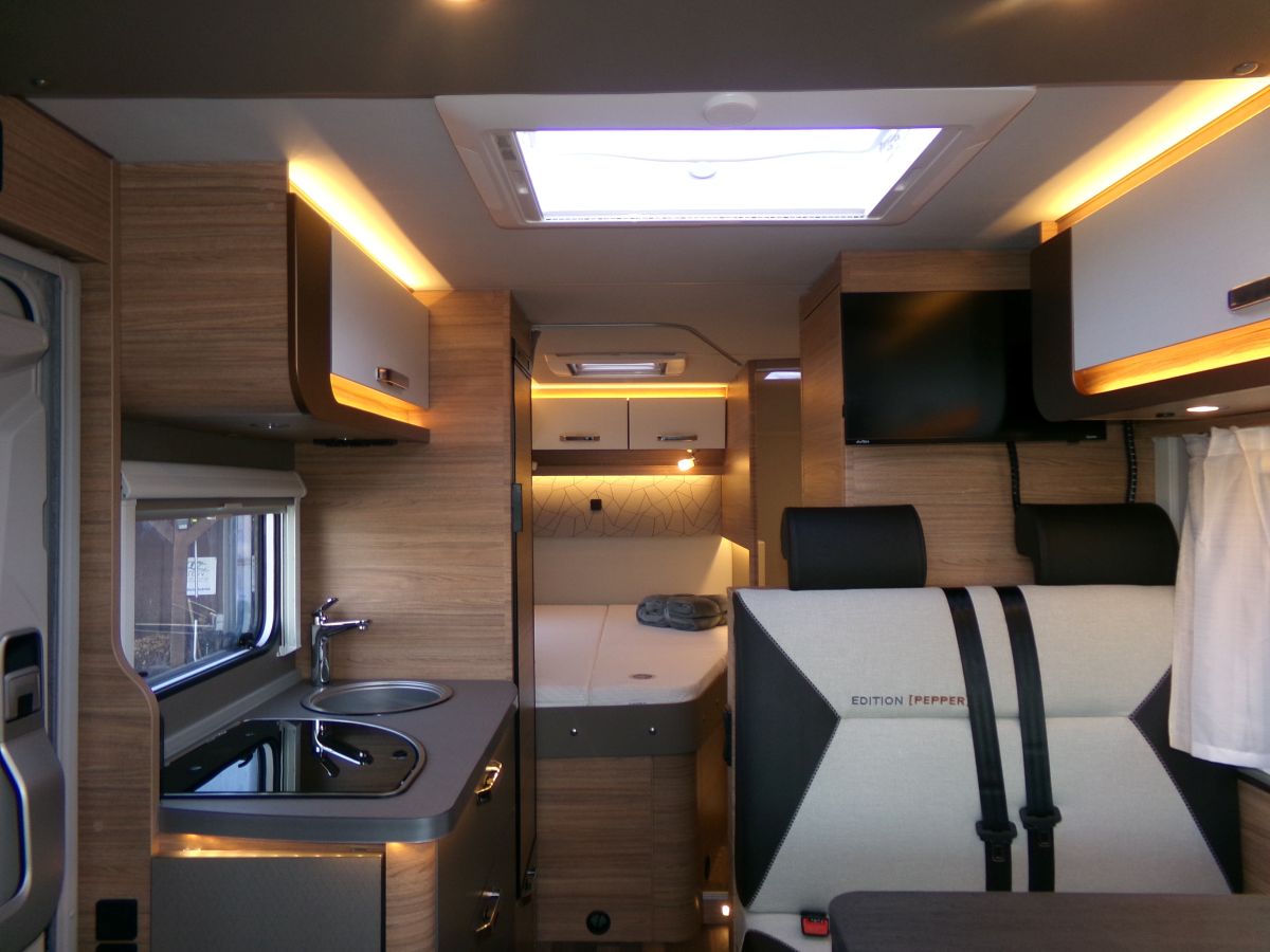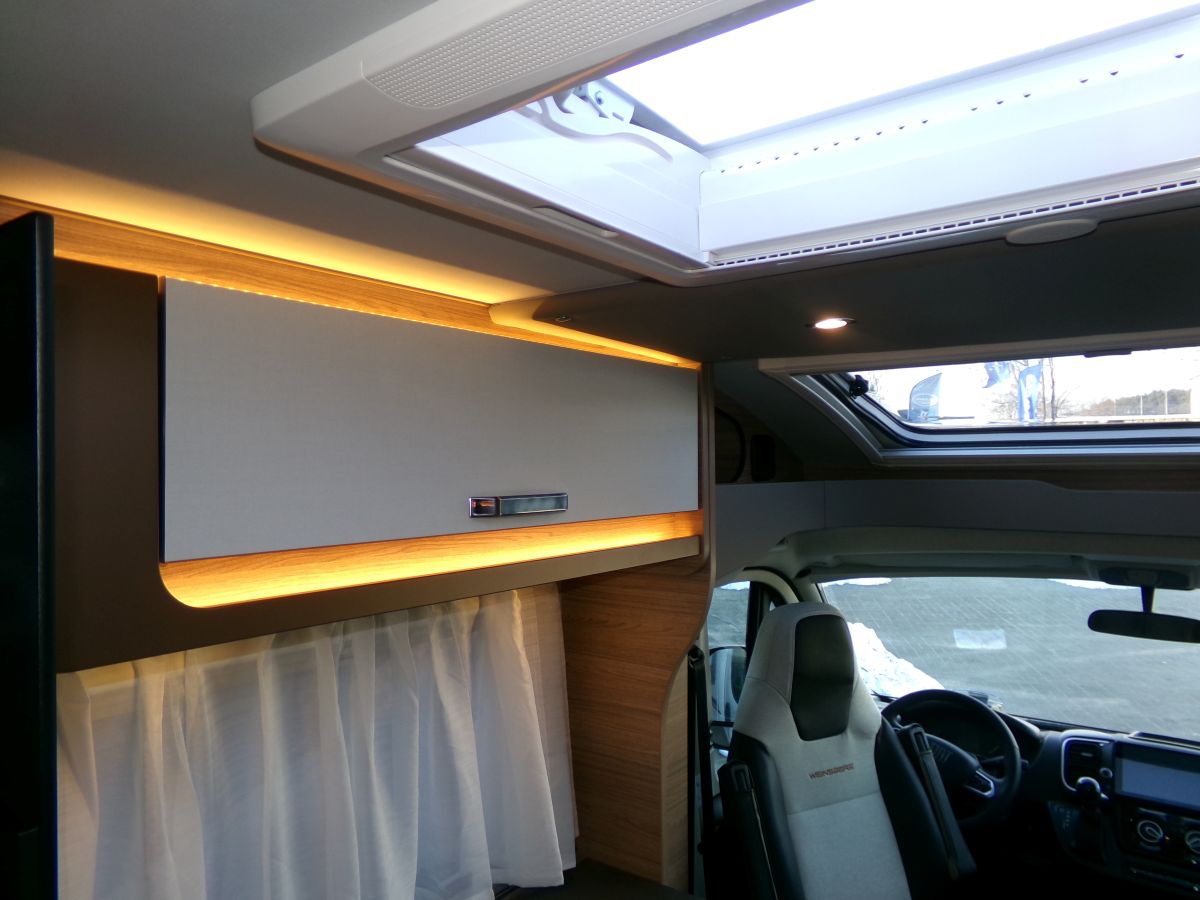 24" Smart TV, All-inOne Navigationssystem, Rückfahrkamera, Thule Markise, Head-up Display, Leichtmetallfegen, Fahrerhausverdunkelung, Panorama- Ausstellfenster Hutze, Dachhaube 70x50 cm, Betterweiterung, Frontstoßfänger in Wagenfarbe, Insektenschutztür, isolierter und beheizbarer Abwassertank, Ambientebeleuchtung, externe W-LAN Antenne, zus. Lautsprecher für den Wohnraum