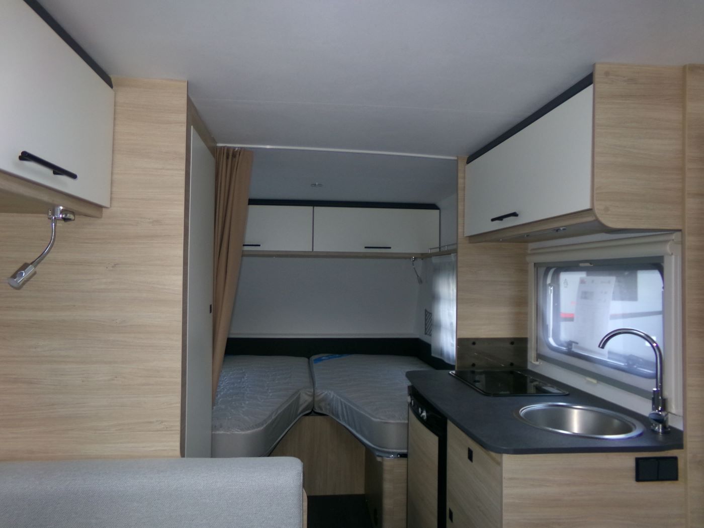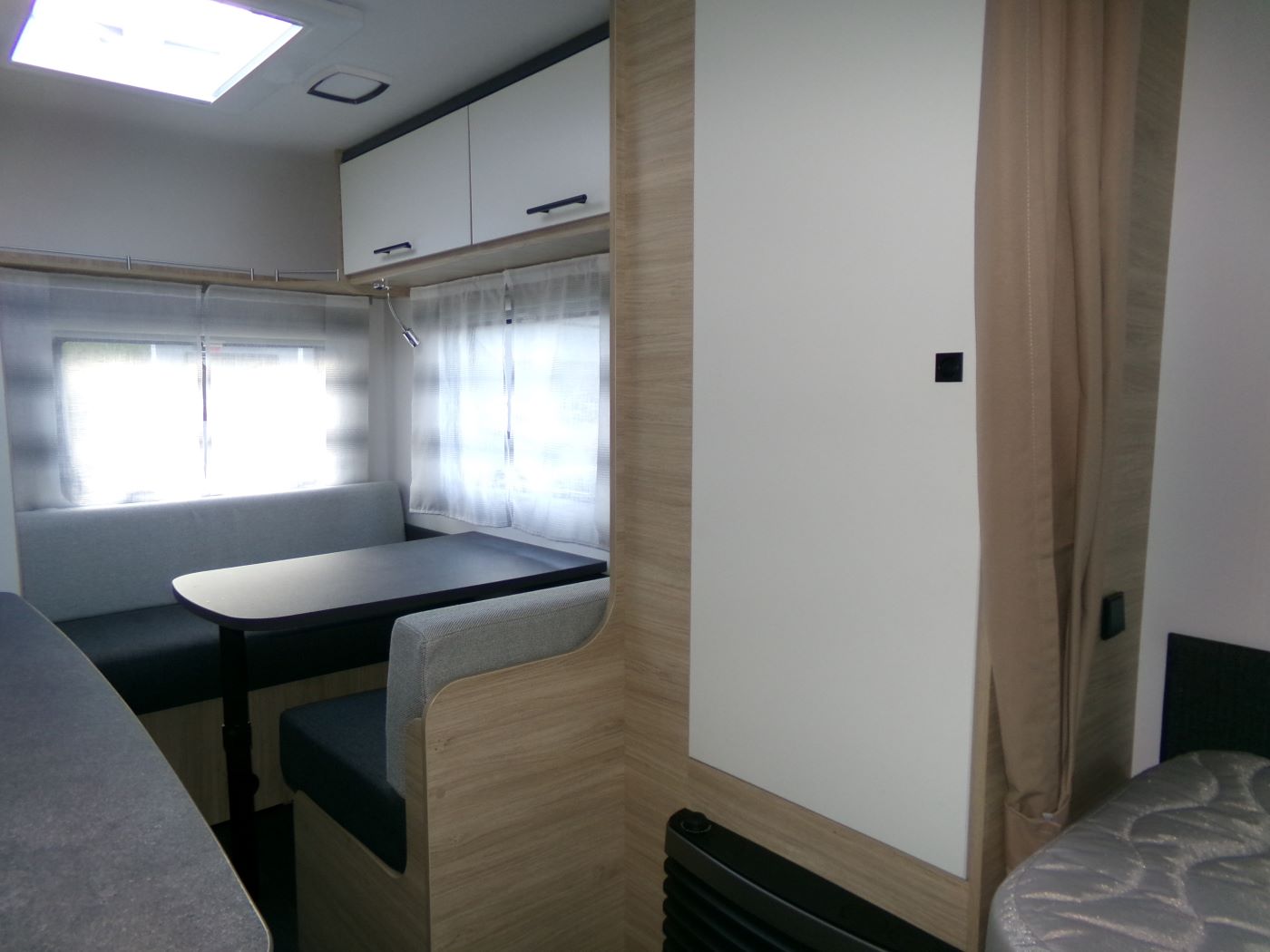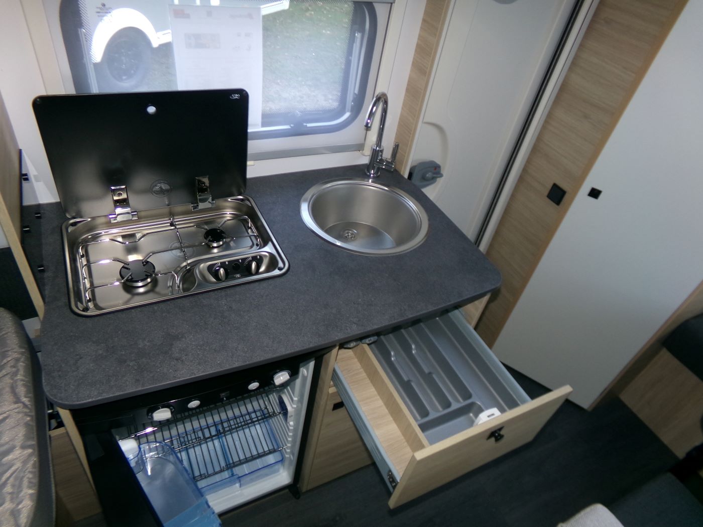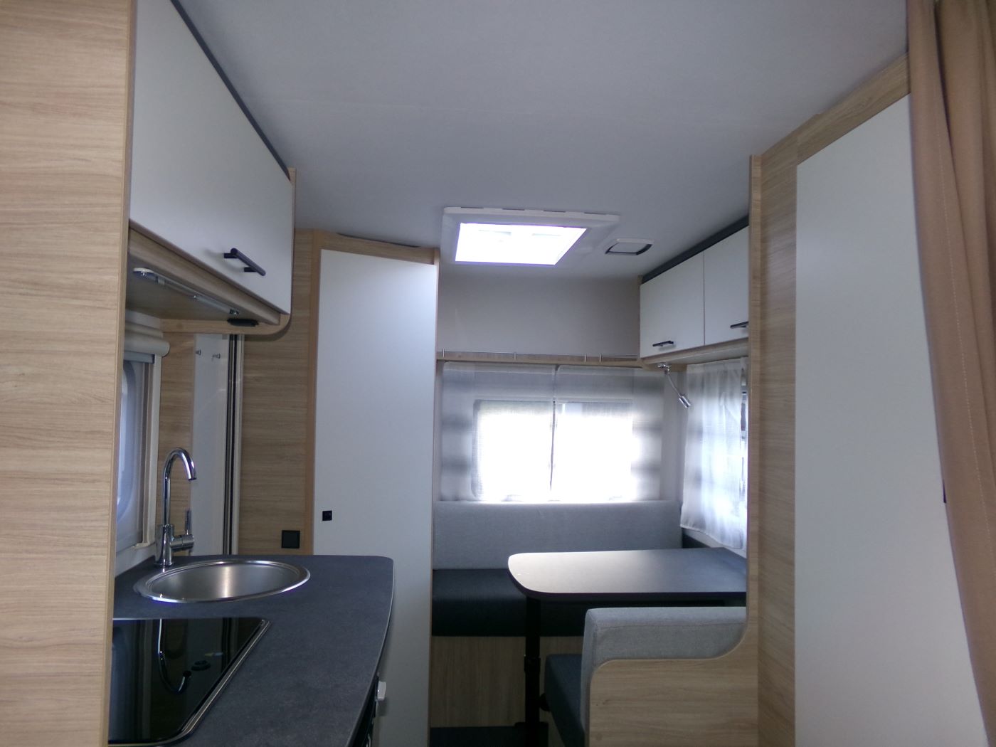 3-Wege Kühlschrank, Gaskochherd, Edelstahlspühlbecken, Thetford Toilette, Ausstellfenster mit Kombirollos, GFK Polyester Dach und Wände, LED Aussenleuchte, LED InnenbeleuchtungUmformer mit Abschalter und Ladegerät