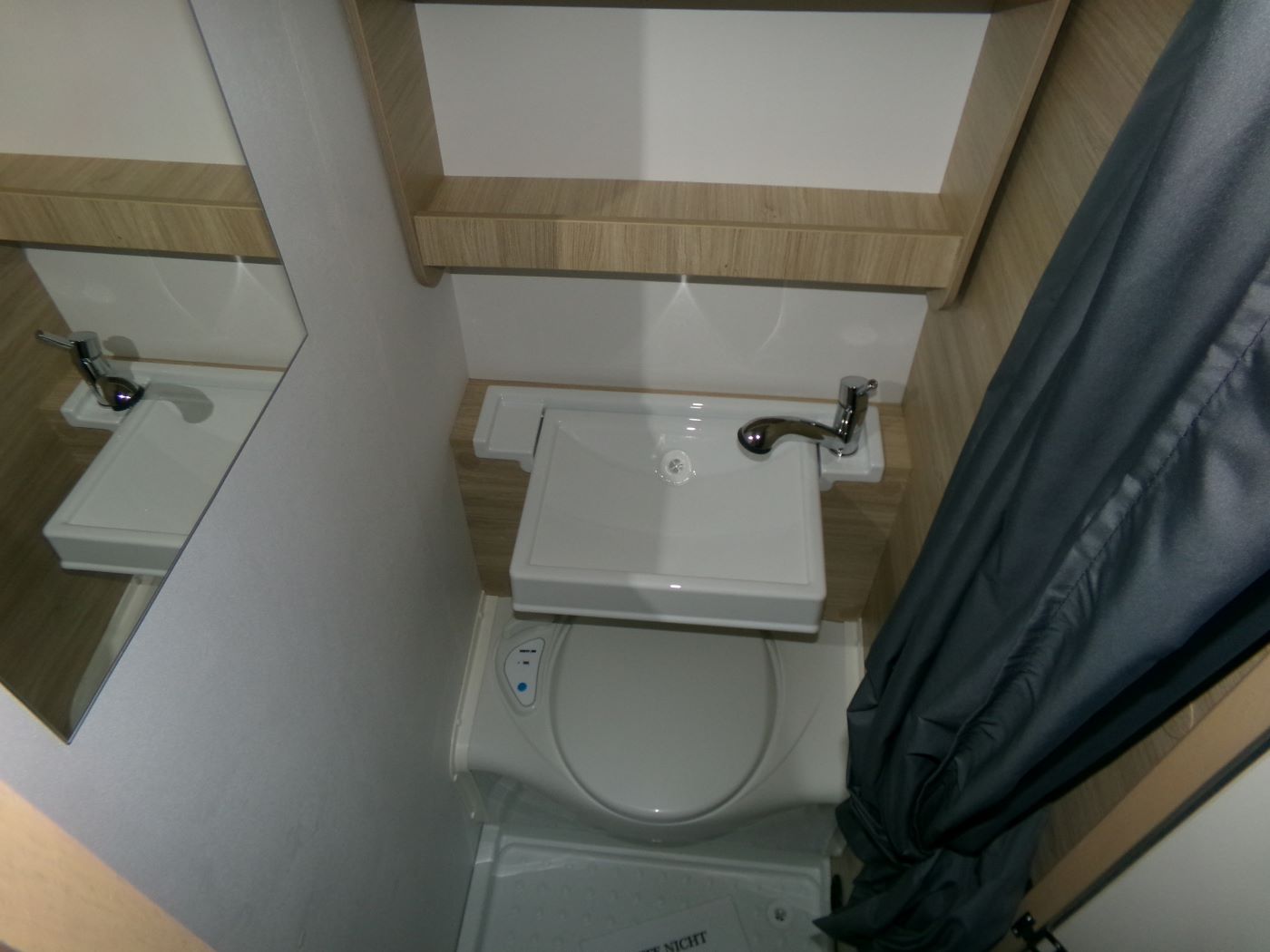 Handbrause, Duschvorhang, 50 liter Frischwassertank, 30 liter Abwassertank rollbar, Warmwassertherme