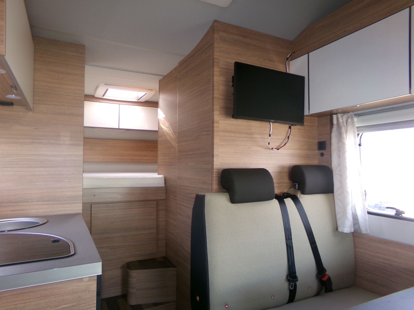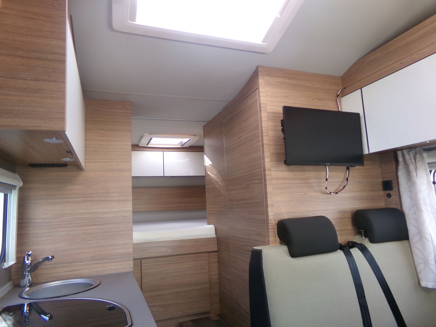 Schonbezüge in Polsterfarbe, Frontstoßfänger in Wagenfarbe lackiert, Truma inet X Master, Nebelscheinwerfer mit Abbiegelicht, Front und Seitenscheibenverdunkelung, Abwassertank isoliert und beheizbar, 230 V zus. in der Heckgarage, Fliegengittertür Aufbau