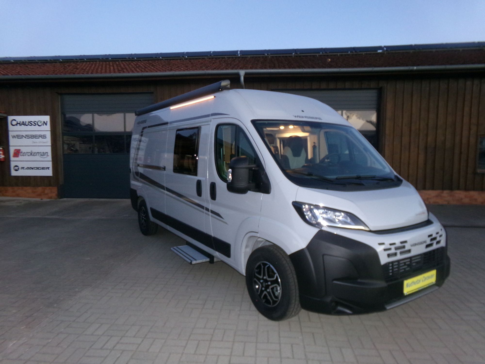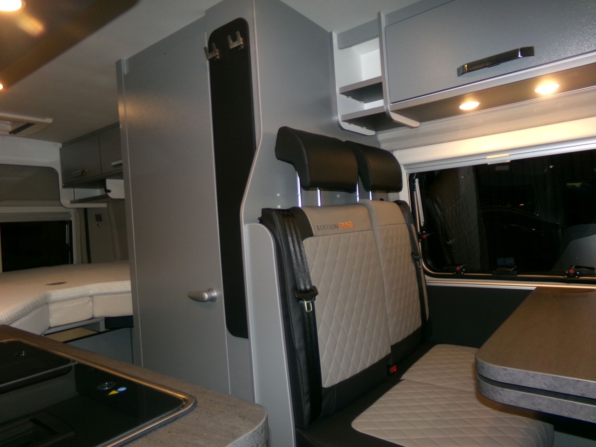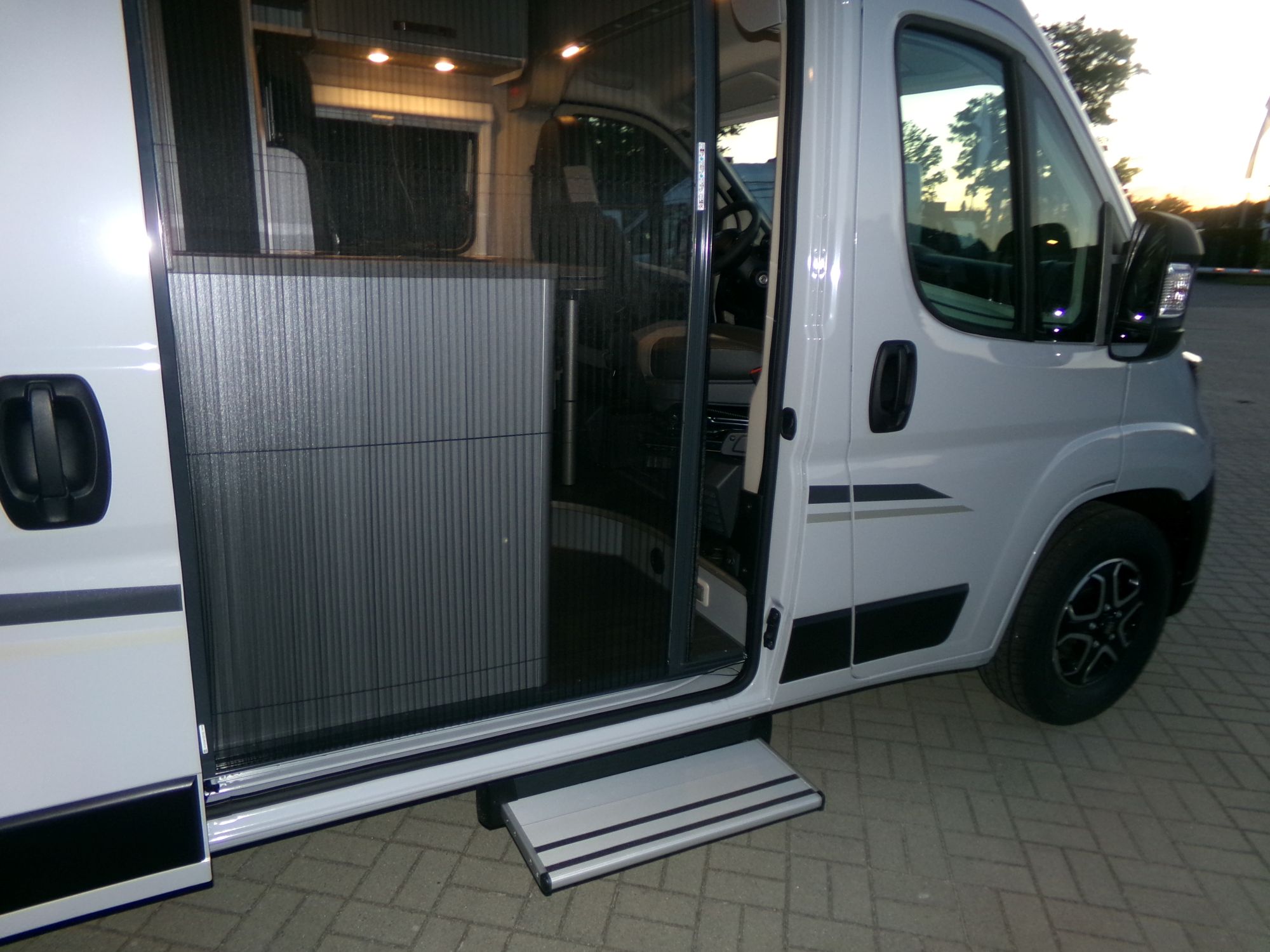 Markise, Leichtmetallfelgen für 16" Bereifung, Mediacenter 6,8", Front und Seitenscheibenverdunkelung, Truma iNet, Rückfahrkamera, Einstiegsstufe elektrisch, Insektenschutztür, Ausstellfenster Nasszelle, Regenrinne über der Schiebetür mit LED Beleuchtung