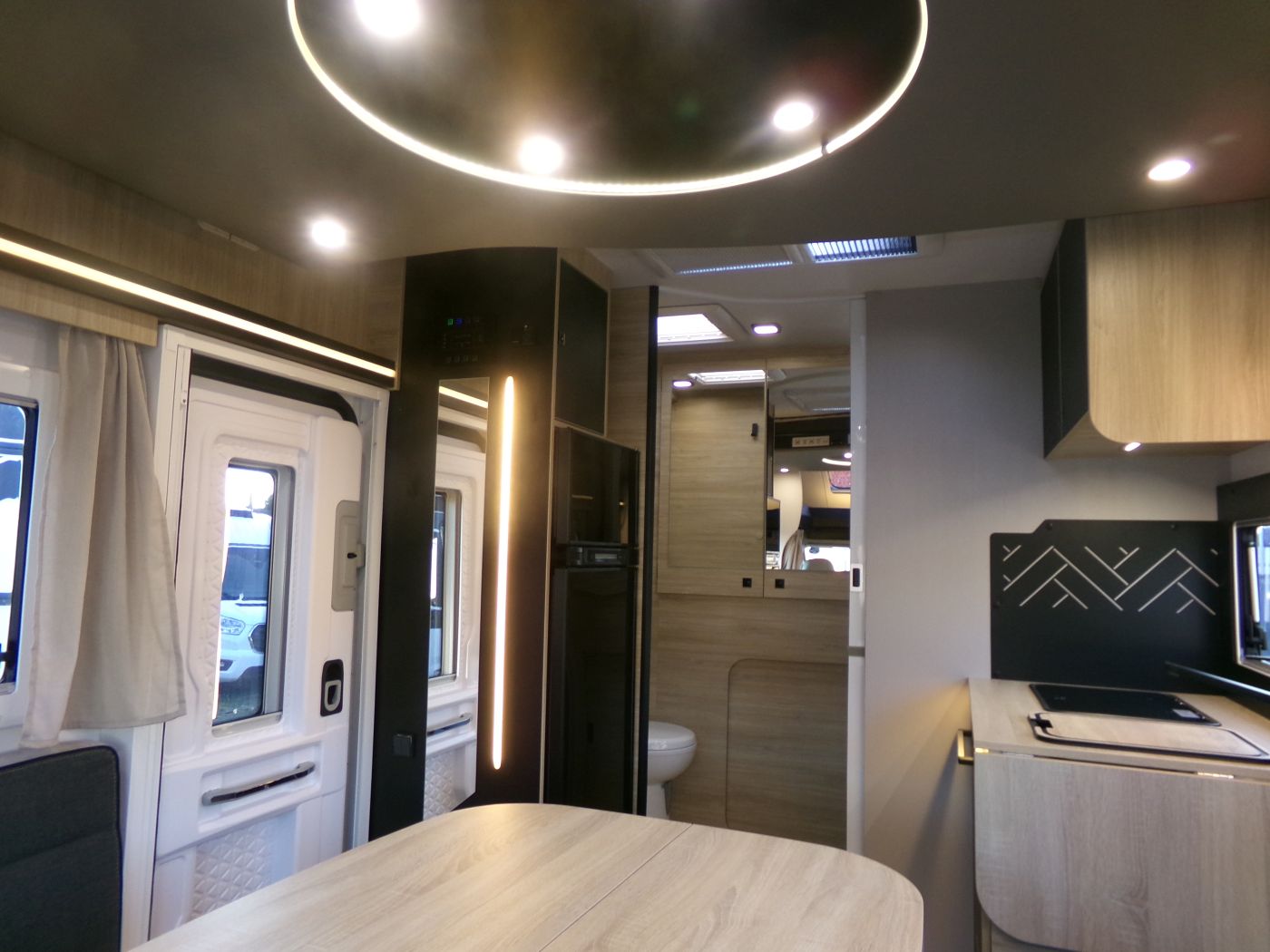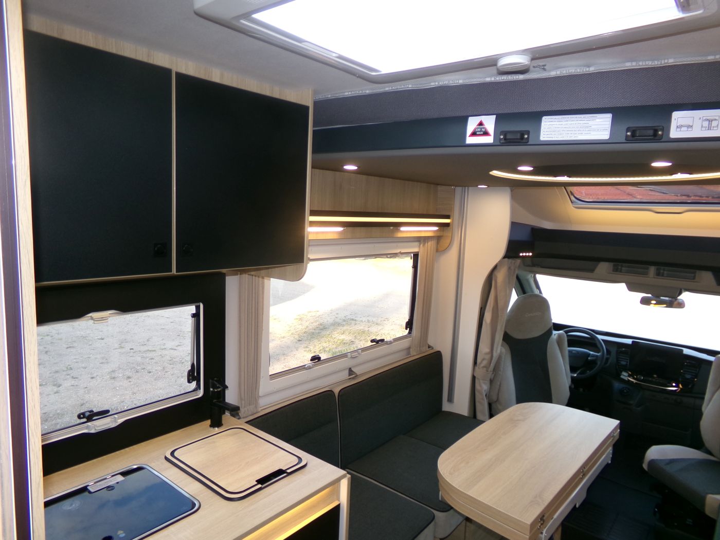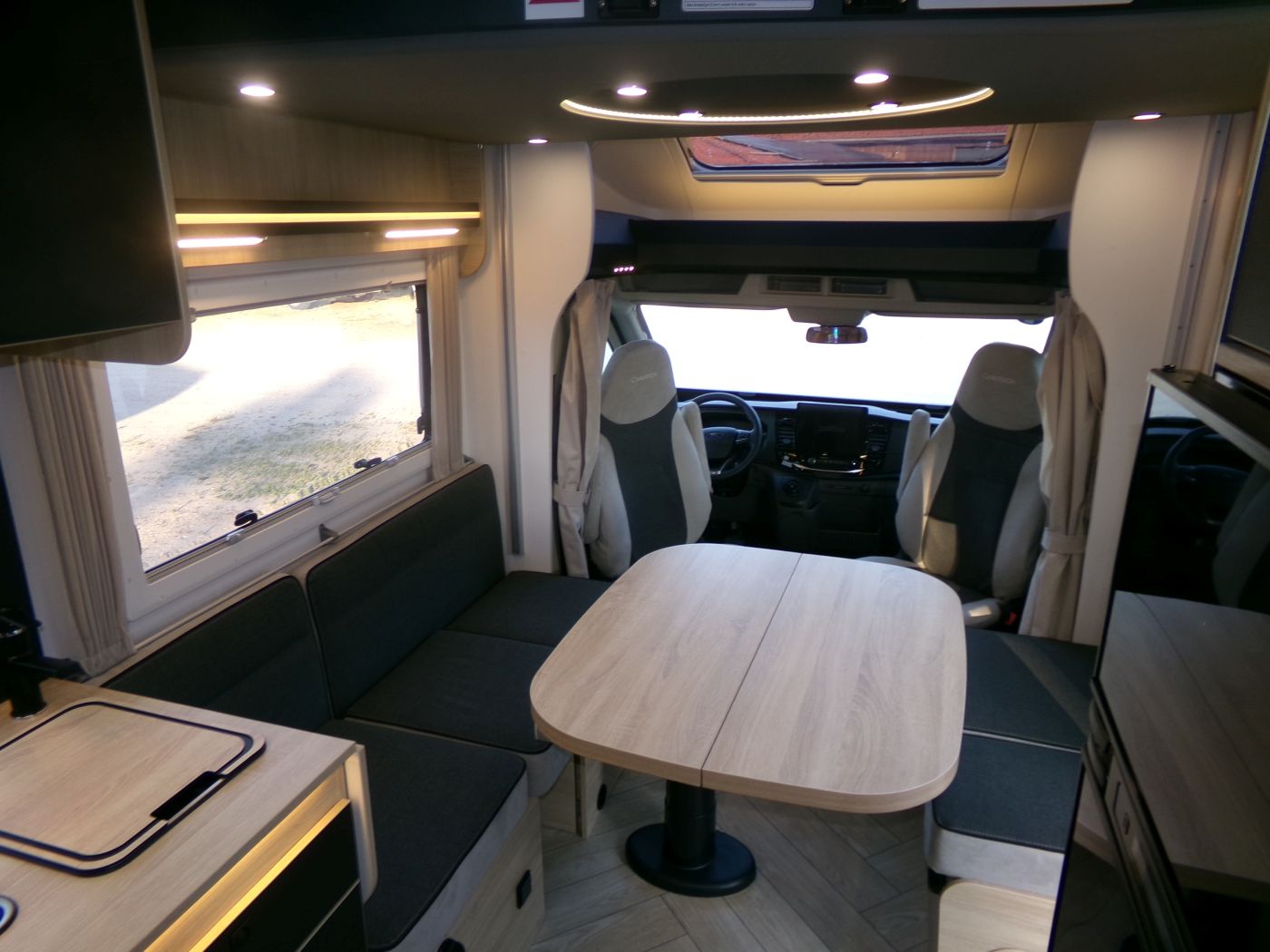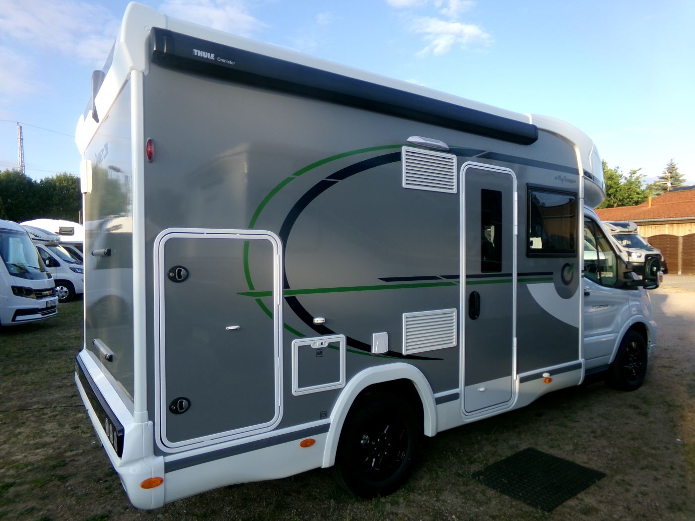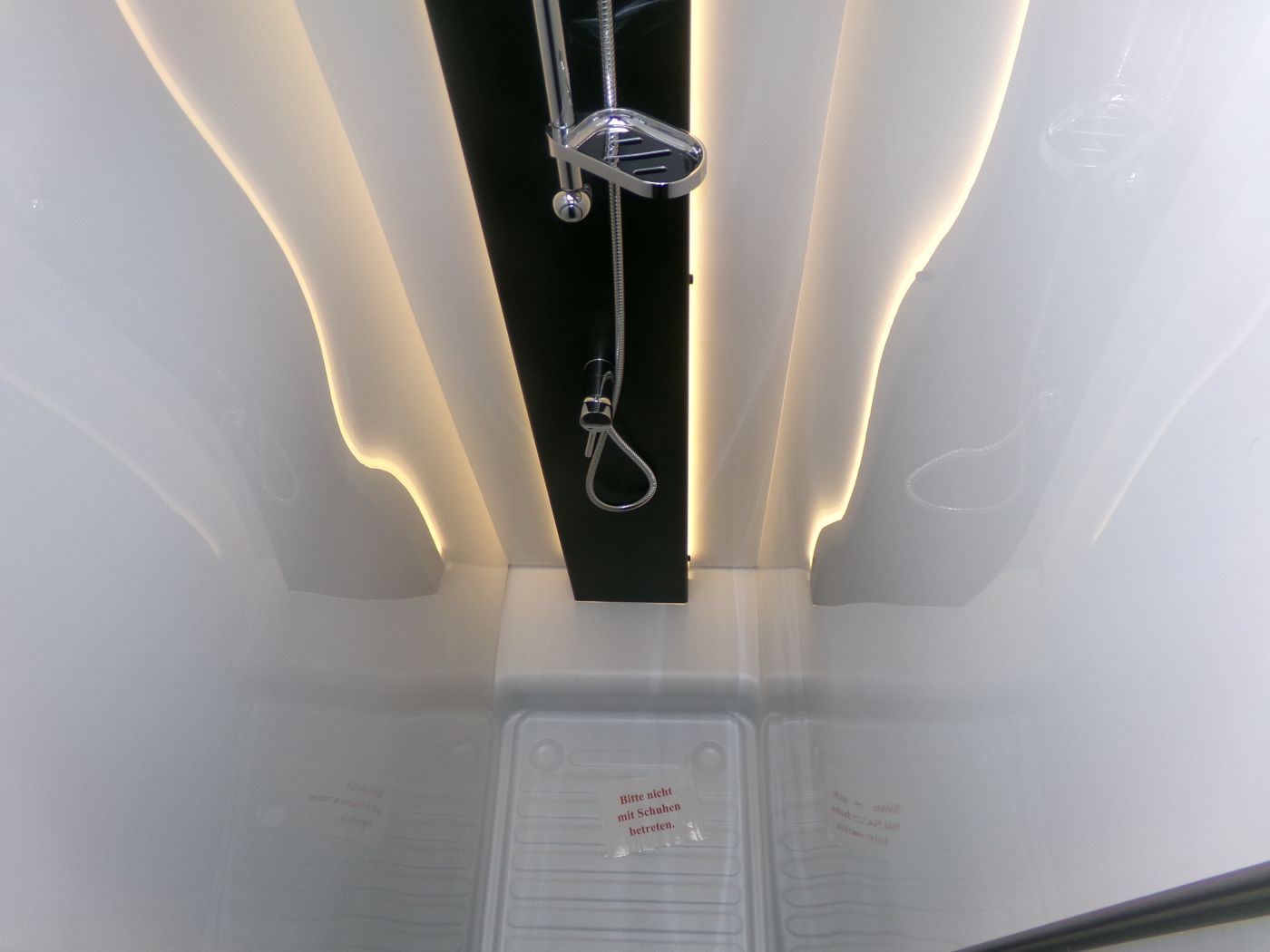 GFK Polyester Dach-Wände und Boden, LED Aussenleuchte, Ausstellfenster mit Kombirollos, Luxus Aufbautür, großer Kühlschrank 167 l AES, Gaskochherd, Thetford Toilette, separate Dusche
