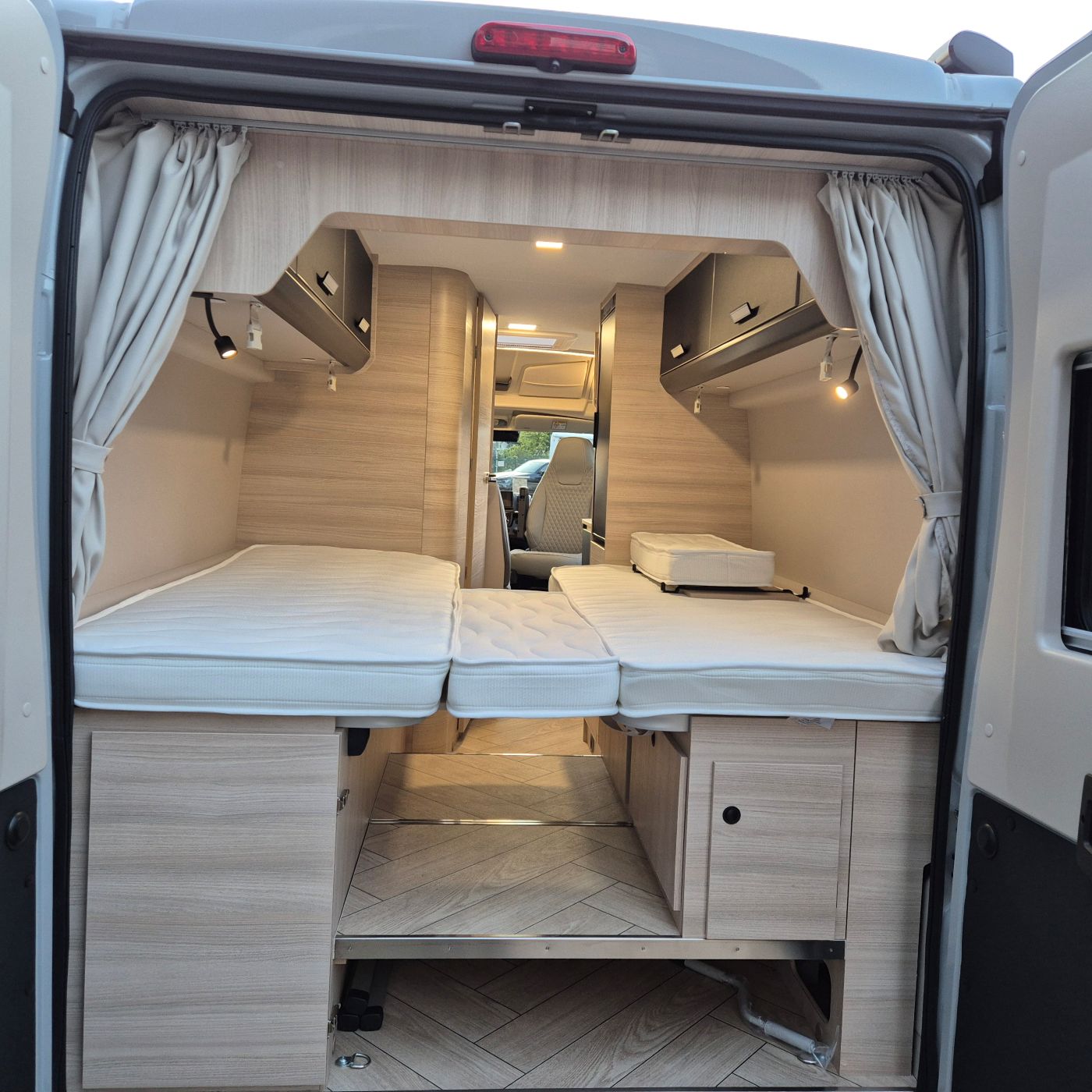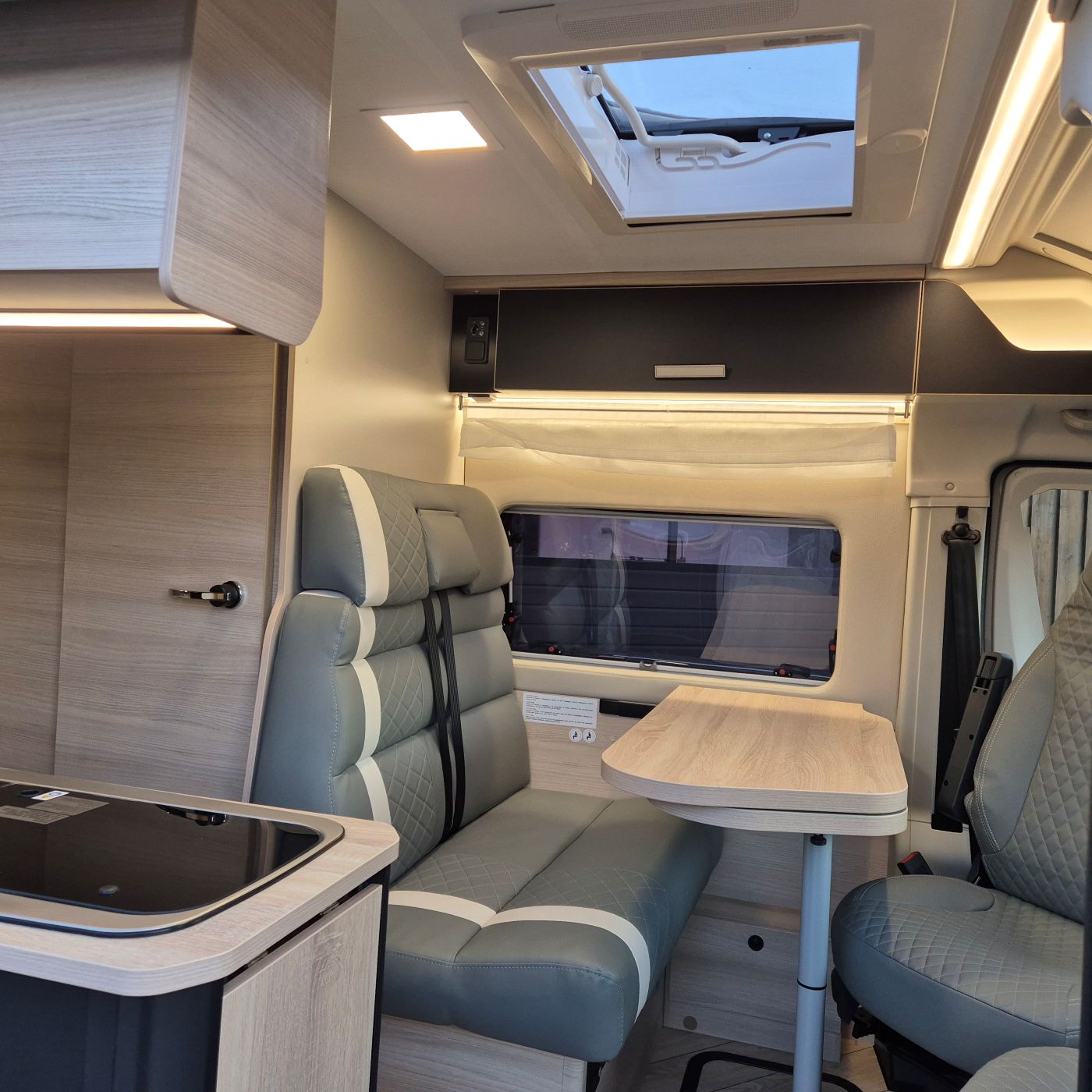Ausstellfenster mit Kombirollos, Panorama Dachhaube, Ausstellfenster Heck, Ausstellfenster Nasszelle, WW- Boiler, Gaskochherd, Kompressor-Kühlschrank, Verbreiterung Esstisch
