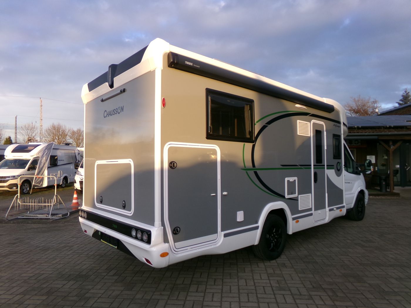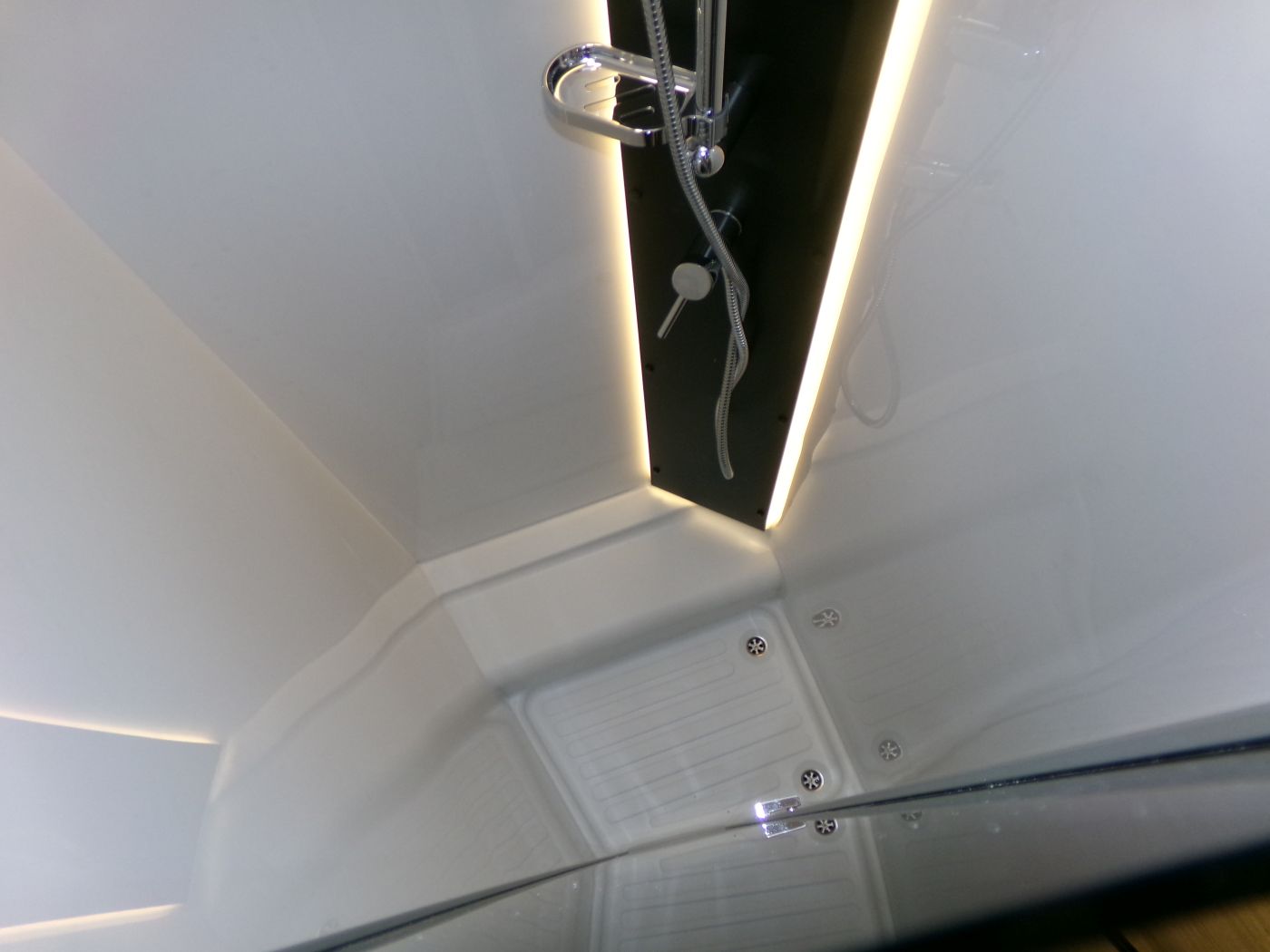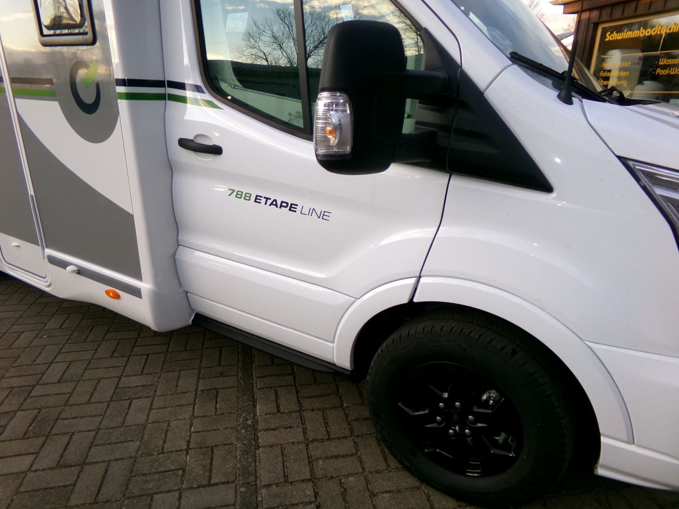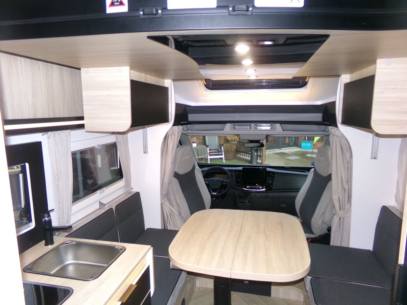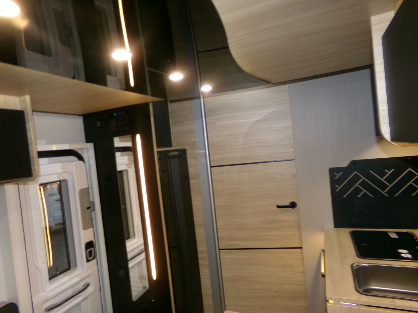 GFK Polyester Dach-Wände und Boden, LED Aussenleuchte, Ausstellfenster mit Kombirollos, Luxus Aufbautür, großer Kühlschrank 141 l AES, Gaskochherd, Thetford Toilette, separate Dusche