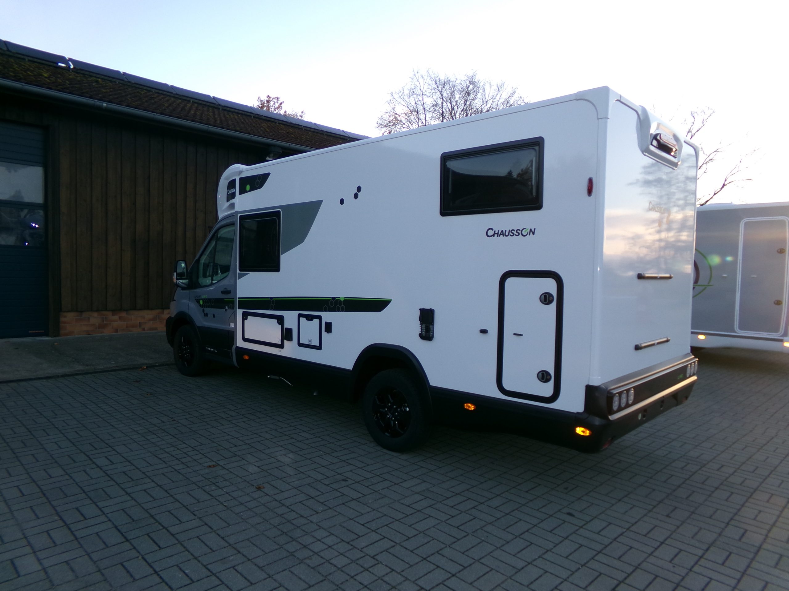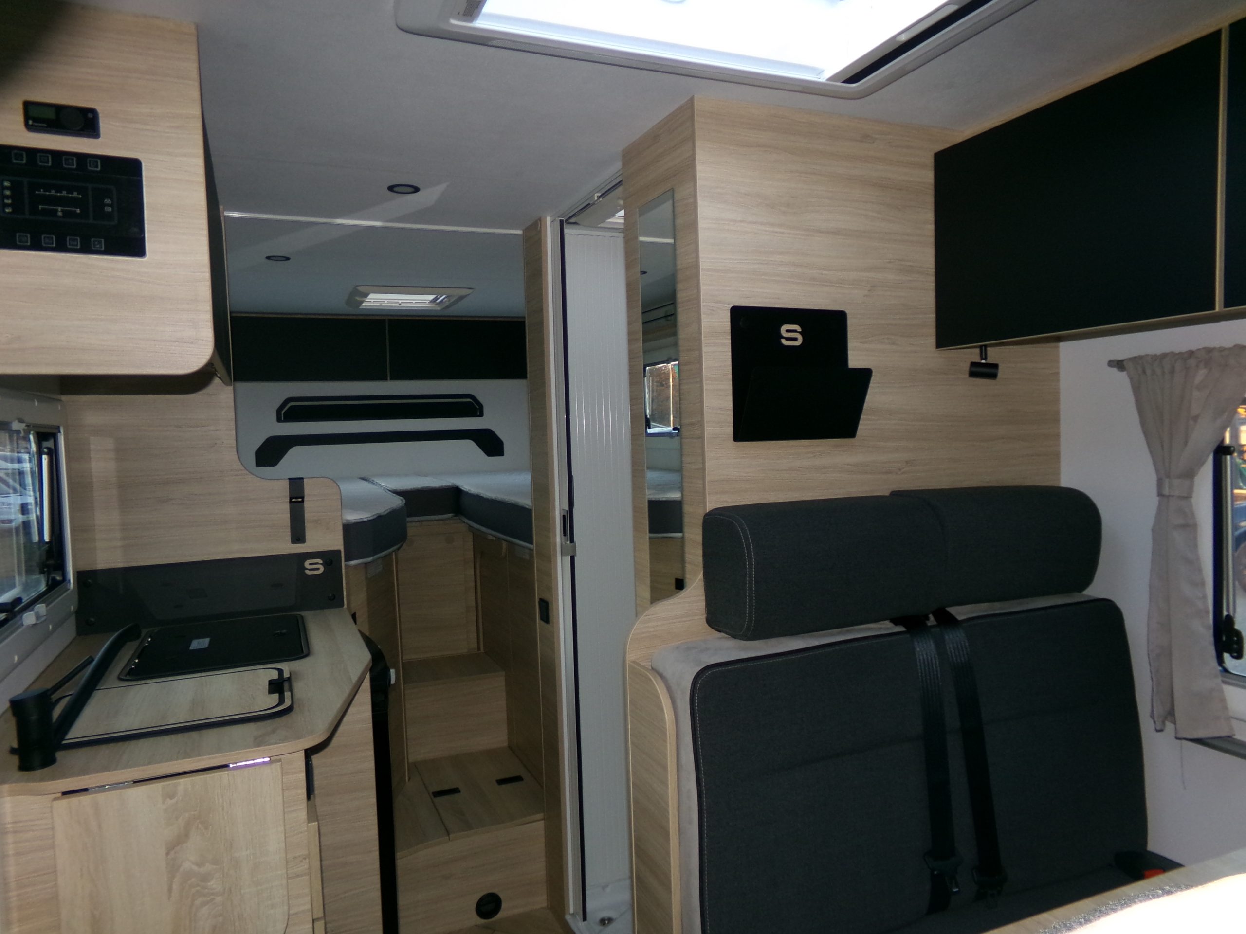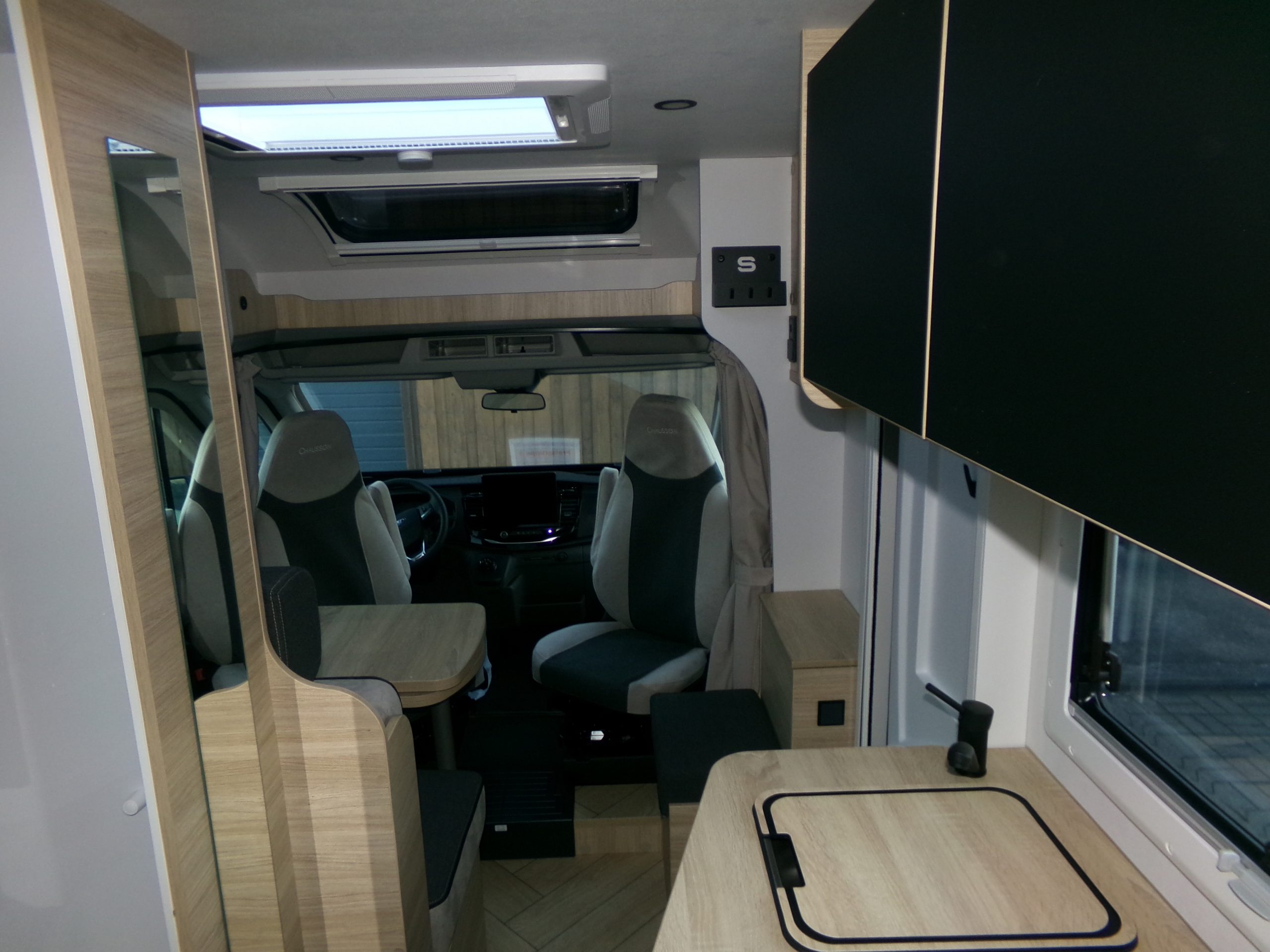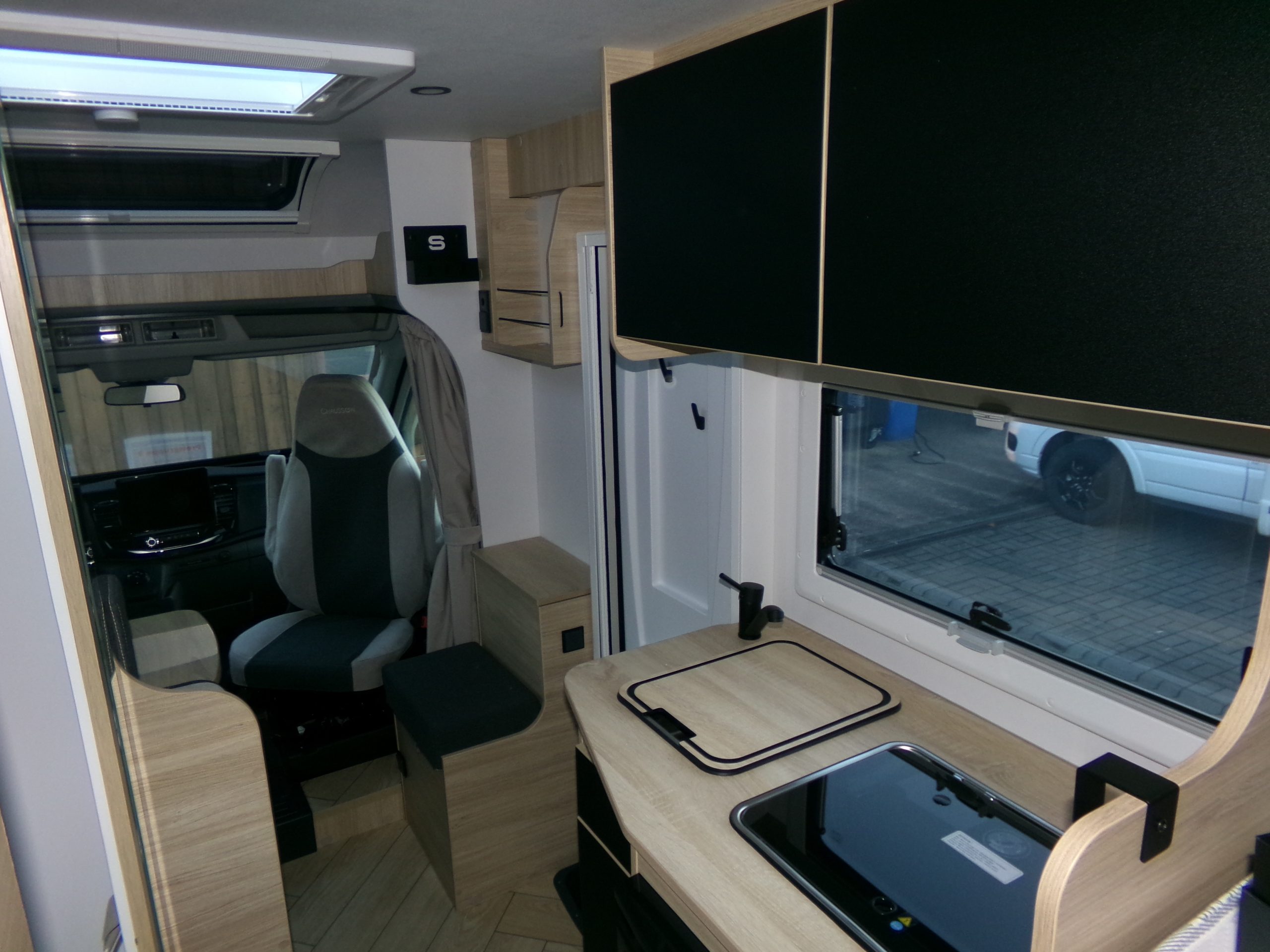 Panorama Dachfenster Fahrerhaus, Ausstellfenster mit Kombirollos, Eingangstür mit Fliegenschutz, GFK Polyester Dach und Wände,