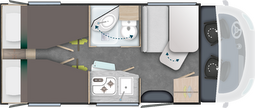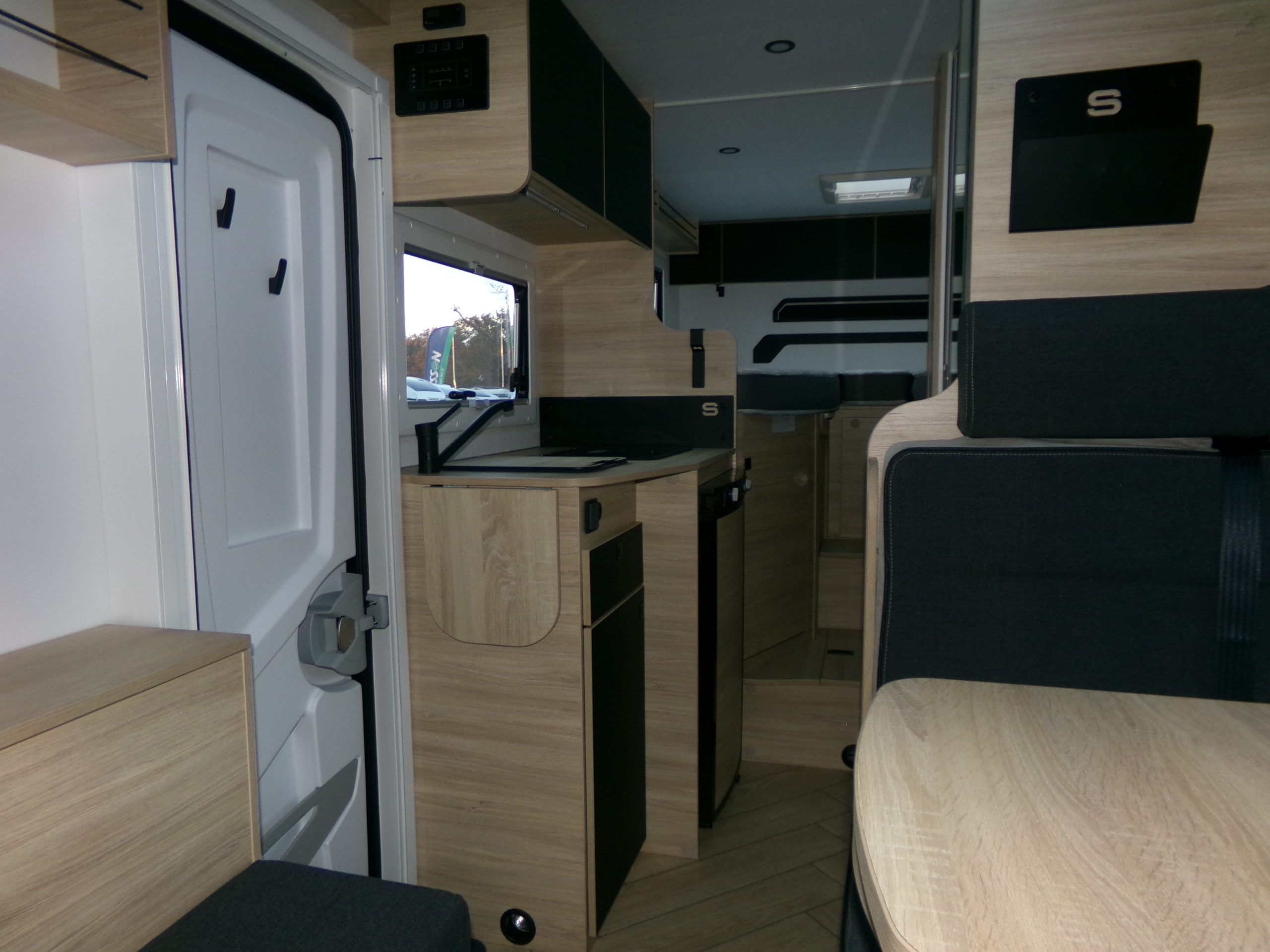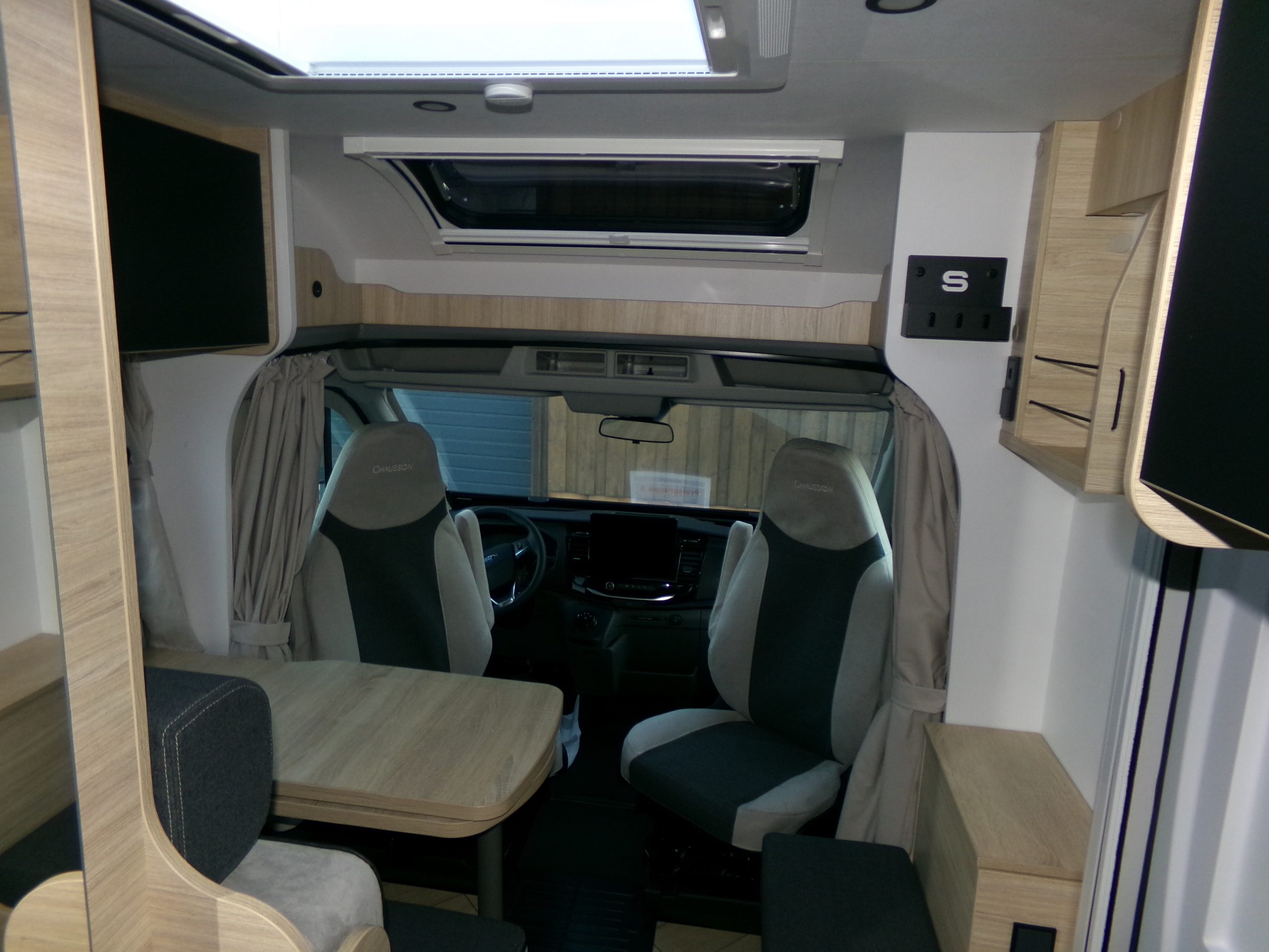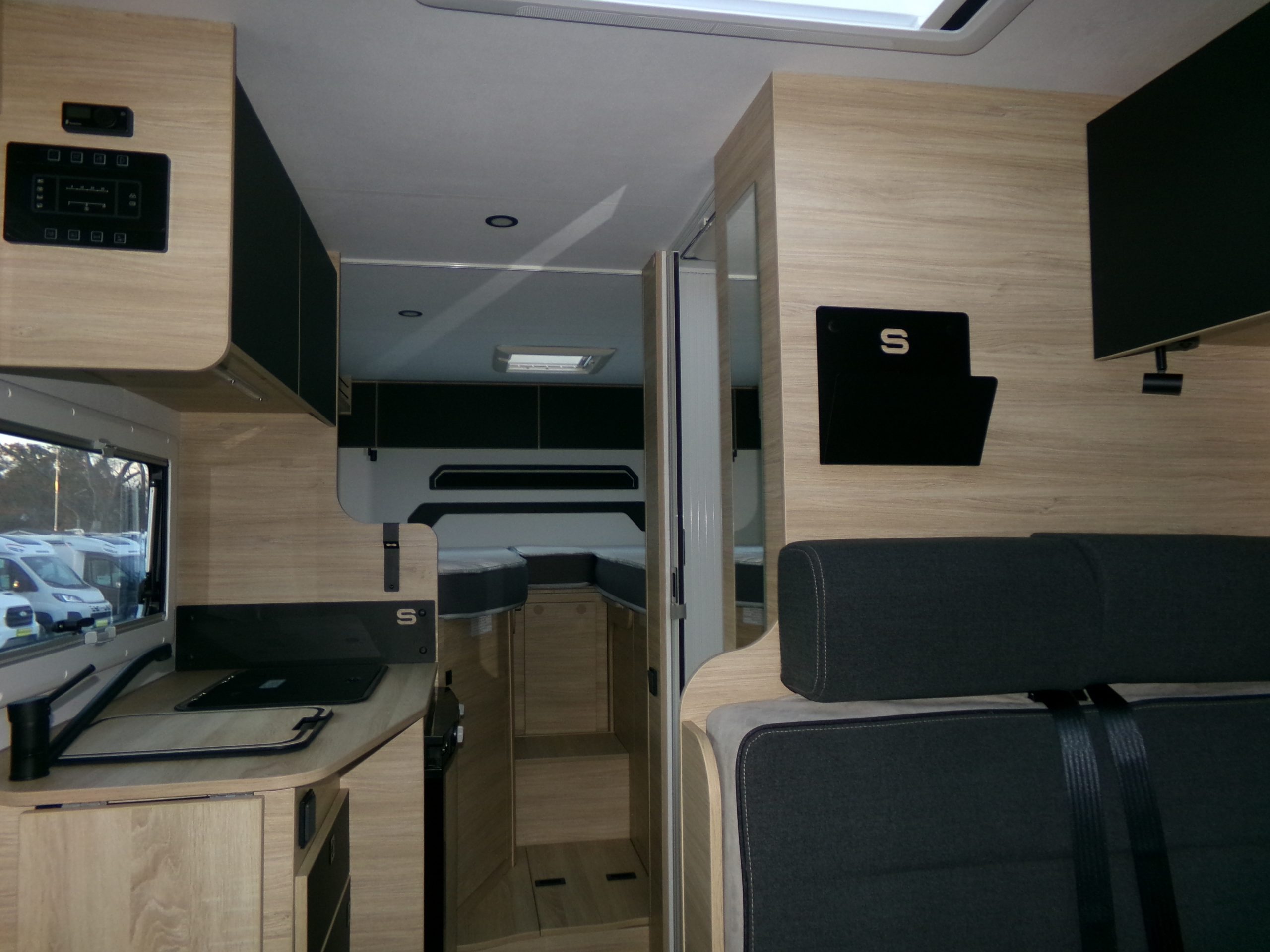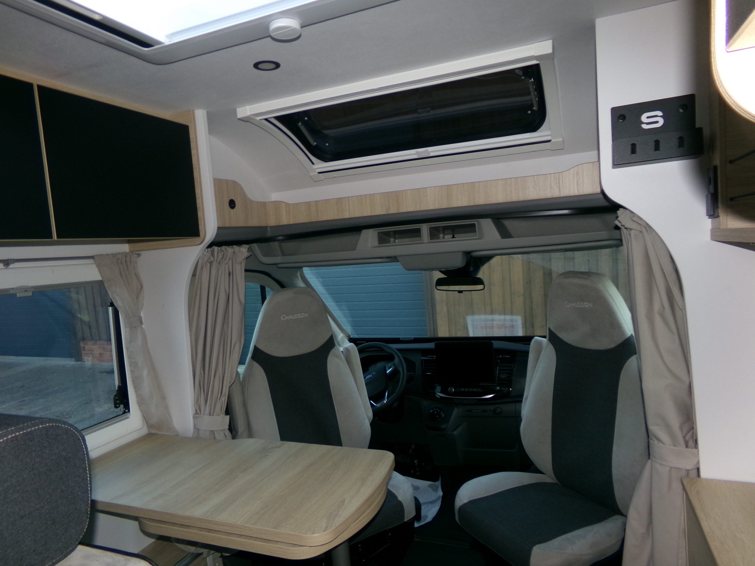 Panorama Dachfenster Fahrerhaus, Ausstellfenster mit Kombirollos, Eingangstür mit Fliegenschutz, GFK Polyester Dach und Wände,