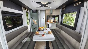 Fahrzeugklima, Tempomat+Geschwindigkeitsbegrenzer, Nebelscheinwerfer, ABS/ESP/Traction+, Fahrer und Beifahrerairbag, Höhenverstellbare Fahrerhaussitze drehbar, Schonbezüge für Fahrerhaussitze in Polsterfarbe, Bergabfahrassistent, elektr. einstellbare Aussenspiegel mit Abtauautomatik, ECO Paket: Start/Stop System mit smarter Lichtmaschine, GFK Polyester Dach+Boden+Wände, Bodenstärke 64mm,