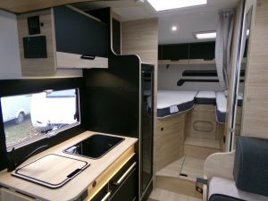 elektr. Hubbett über der Sitzgruppe- Einzellbetten im Heck zum großen umbaubar