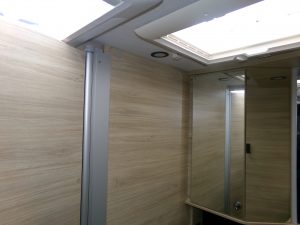 GfK Polyester Dach und Wände, Aussen- Gasanschluss, Aussendusche, Ausstellfenster mit Kombirollos, Panorama Dachfenster Fahrerhaus, Panorama Dachhaube 70x50 mit Kombirollos, XL Aufbautür, LED Aussenleuchte, LED Innenbeleuchtung 100 %, Gaskochherd, Edelstahlspühle, großer Kompresser Kühlschrank, Tisch elektr. Absenkbar, elektr. Thetford Toilette, 110 Ah Aufbaubatterie AGM