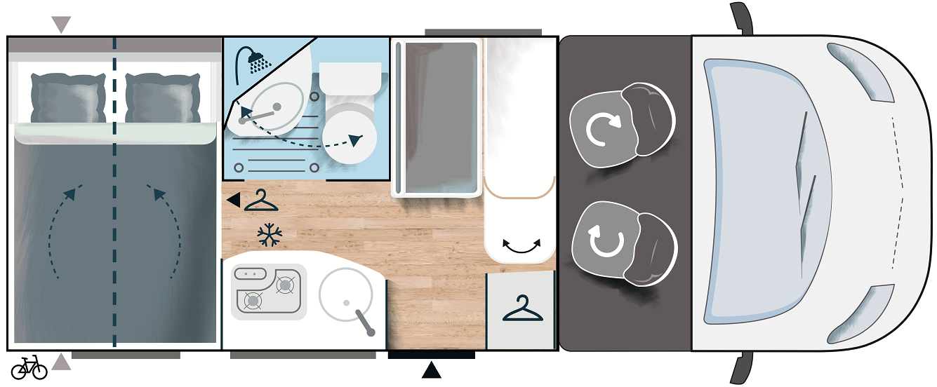 Schlafplätze: 2 Eßtischplätze: 4 zugelassene Sitzplätze: 4